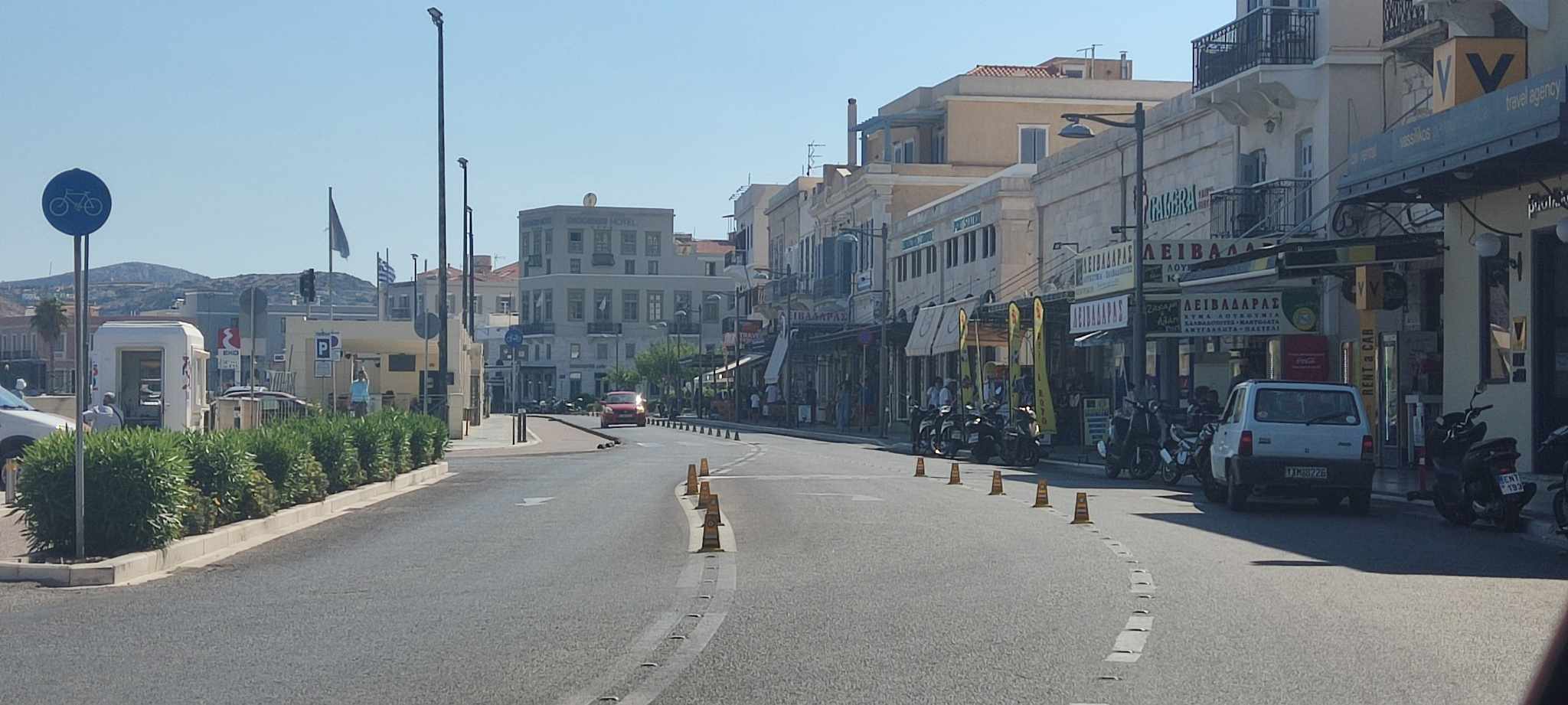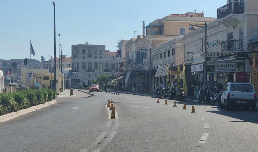 Ειδικότερα, τοποθετήθηκαν εύκαμπτα εμπόδια στη διαχωριστική γραμμή των δύο ρευμάτων, που το ένα οδηγεί εκτός πόλης και το άλλο βοηθά τα οχήματα να στρίψουν για να εισέλθουν στον χώρο σύντομης αναμονής των επιβατών για τα πλοία. Πρόκειται για μία ενέργεια που έρχεται να βοηθήσει περισσότερο τους επισκέπτες του νησιού αναφορικά με τον προσανατολισμό τους, σε ένα σημείο ιδιαίτερα πολυσύχναστο από κόσμο και επιβαρυμένο από συνεχή κυκλοφοριακή ροή.