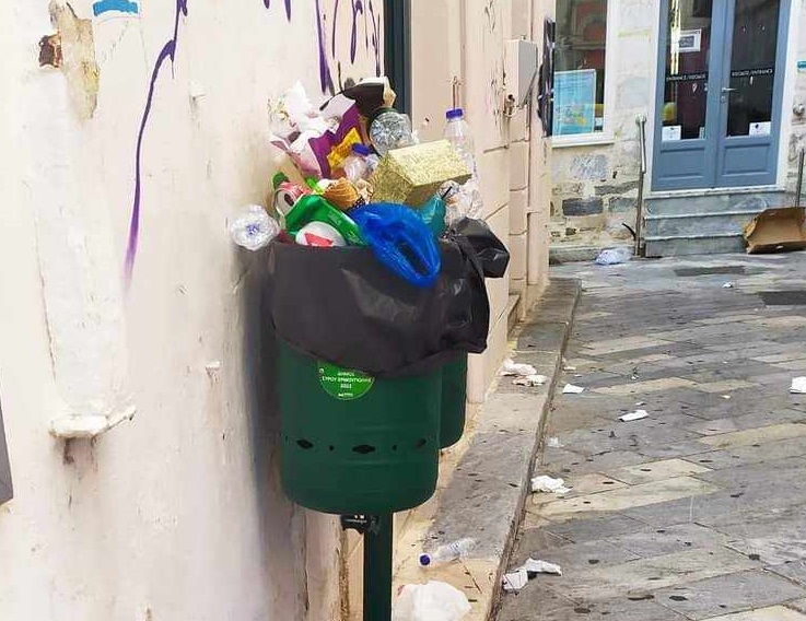 Ειδικότερα, οι μικροί πράσινοι κάδοι ήταν ξεχειλισμένοι από σακούλες με απορρίμματα καθώς επίσης και κάποια σημεία του δρόμου ήταν γεμάτα από χαρτιά και κούτες. Πρόκειται για μία κατάσταση που δυστυχώς επαναλαμβάνεται, αφού ορισμένοι πολίτες δεν αντιλαμβάνονται ορθά τη χρήση των μικρών κάδων, ως κάδων αποκλειστικά μικροαπορριμμάτων.