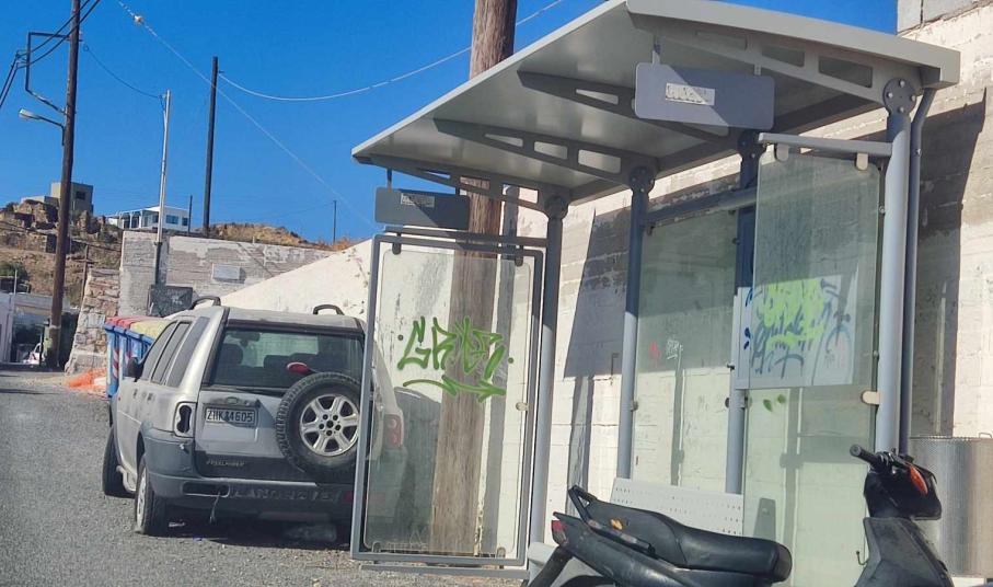 Ο κύκλος της ανελέητης “επίθεσης” ενάντια στον εξοπλισμό της αστικής συγκοινωνίας στη Σύρο, φαίνεται πως συνεχίζεται, αφού άγνωστοι, έβαψαν με σπρέι και τη νέα στάση στην περιοχή της Ανάστασης.