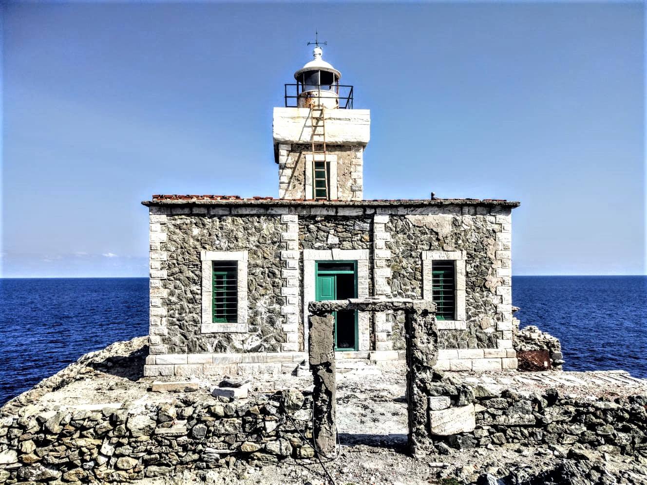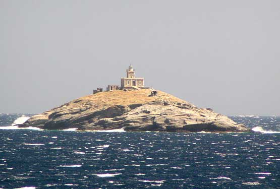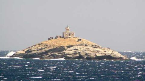 Ο φάρος στο νησάκι Δύσβατο, στο Στενό Άνδρου-Τήνου