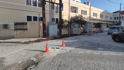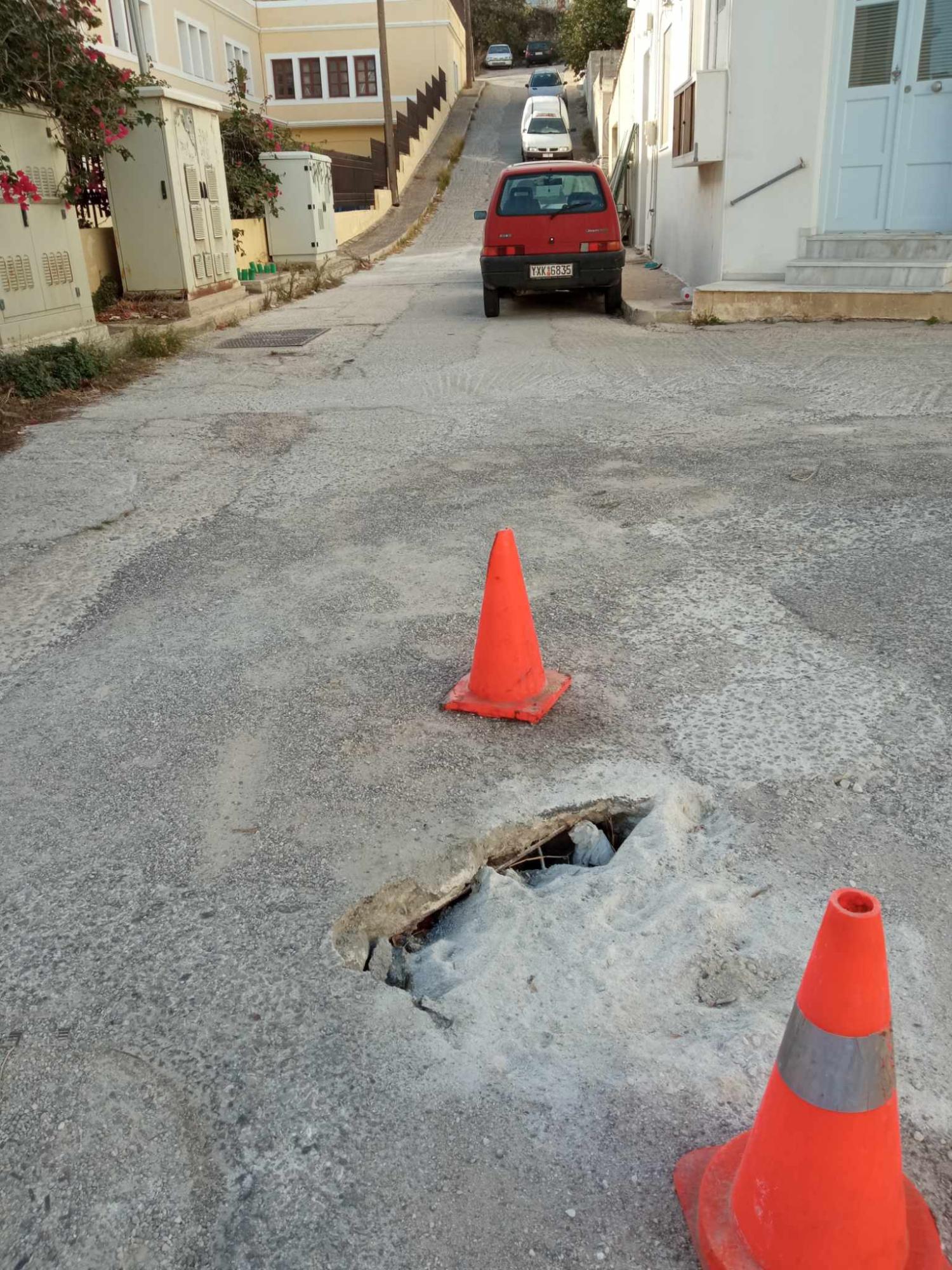 SOS για τμήμα του οδοστρώματος στην οδό Αντωνίου Μάτεση στην Ερμούπολη