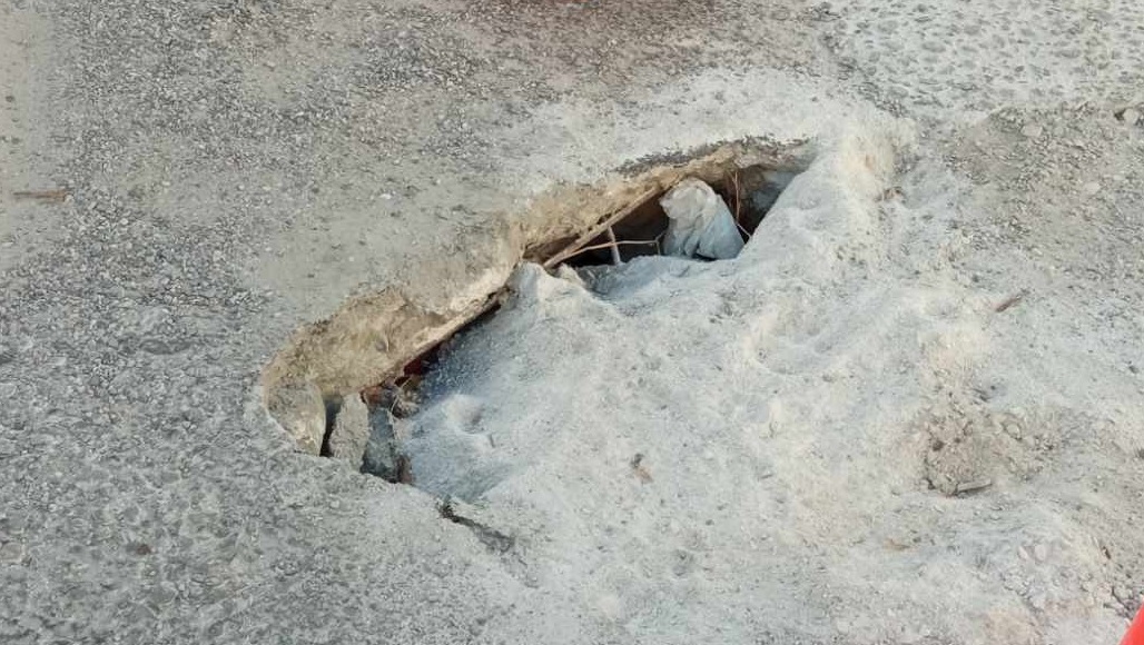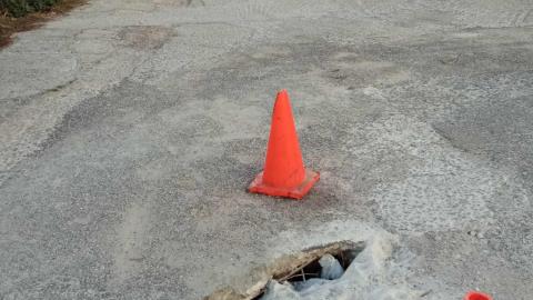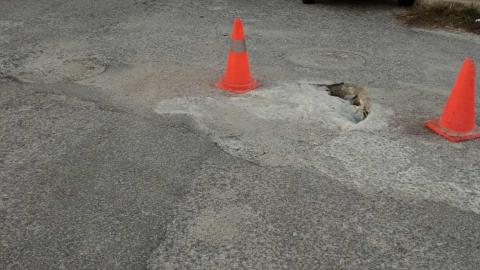 Καθίζηση δρόμου και ορατός κίνδυνος ατυχήματος