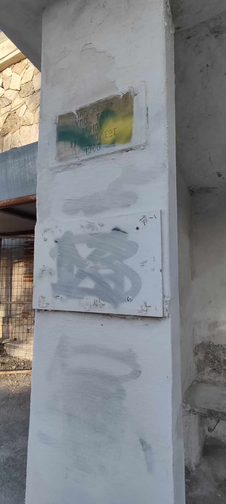 Όλο το τελευταίο διάστημα σε όλες τις επιφάνειές της, άγνωστοι είχαν γράψει συνθήματα με σπρέι, υποβαθμίζοντάς την αισθητικά, ενώ σε αρκετά τμήματά της, έχουν παρατηρηθεί εκτεταμένες φθορές, με αποτέλεσμα να χρειάζονται συντηρήσεις και αποκαταστάσεις.