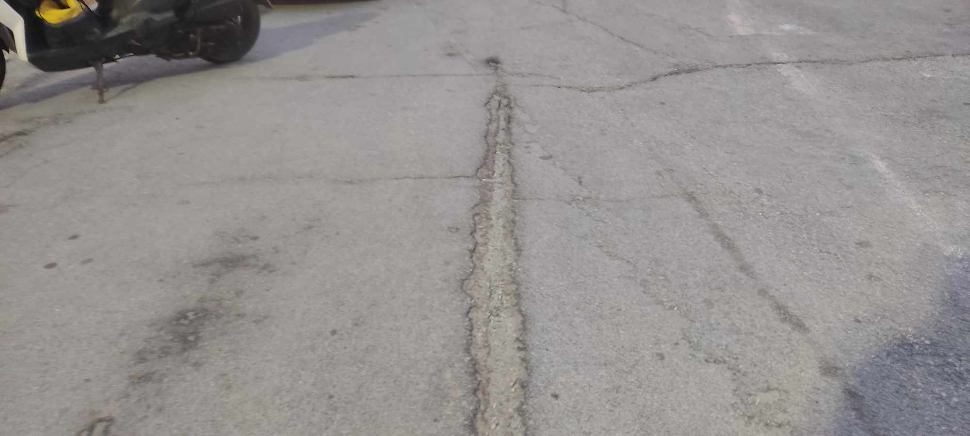 Ειδικότερα, σε αρκετά σημεία έχει “σπάσει” το οδόστρωμα και έχει αποκολληθεί τμήμα της ασφαλτόστρωσης, με αποτέλεσμα να έχουν διαμορφωθεί “αυλάκια” κατά μήκος του δρόμου, στα οποία συχνά πέφτουν οι οδηγοί μηχανών.