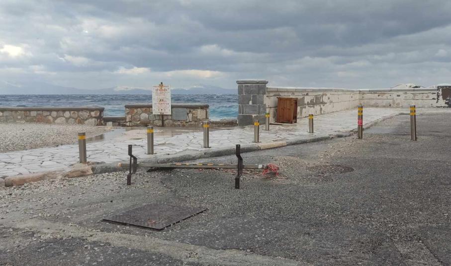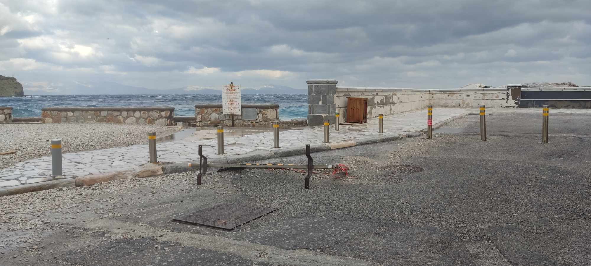 Εκτοπίστηκαν… από τη θέση τους ακόμη και τα βαριά κιγκλιδώματα στα “Κύματα”, στην Ερμούπολη, χθες, εξαιτίας του δυνατού ανέμου, ο οποίος κατάφερε να τα… σκορπίσει σε πολλά σημεία της περιοχής.