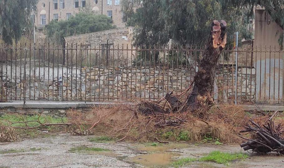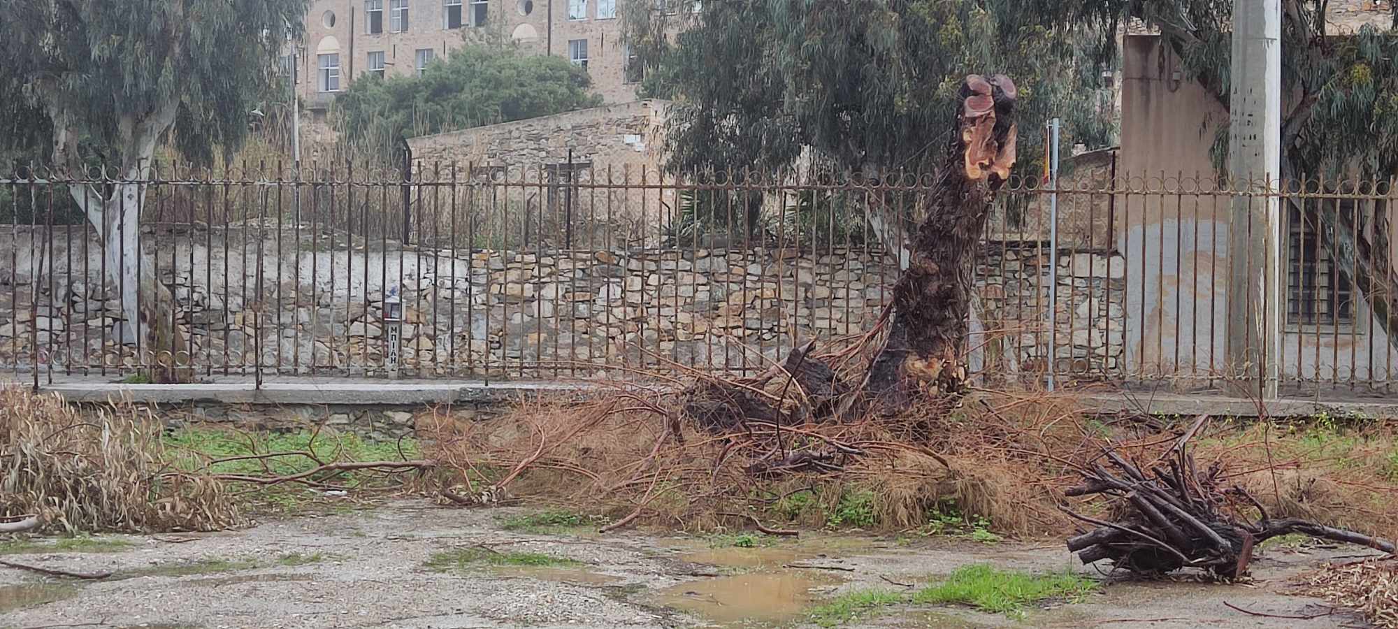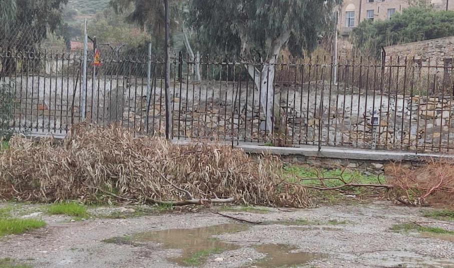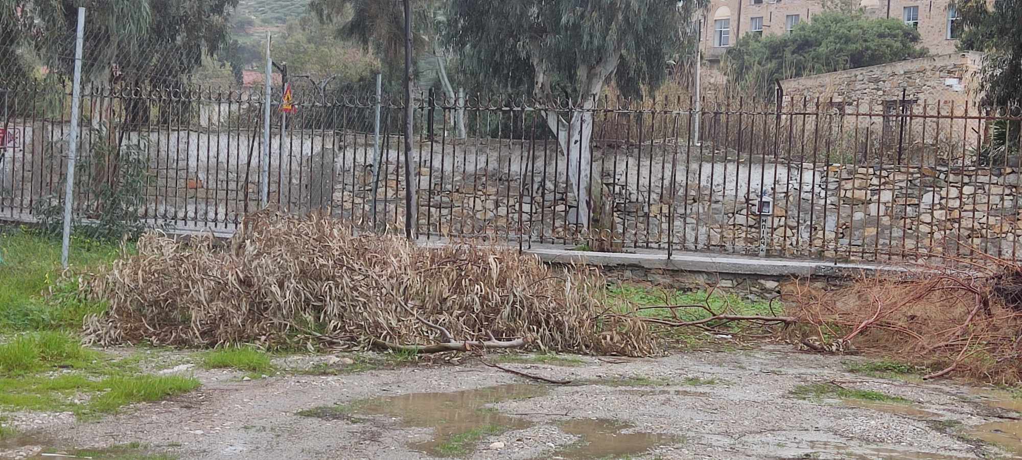 “Πλημμυρισμένος” είναι ο περιβάλλον χώρος των γηπέδων τένις στο Αθλητικό Κέντρο Ερμούπολης από κλαδιά και μεγάλα τμήματα δέντρων που κλαδεύτηκαν προ μηνός, αφού μέχρι σήμερα δεν έχουν απομακρυνθεί.