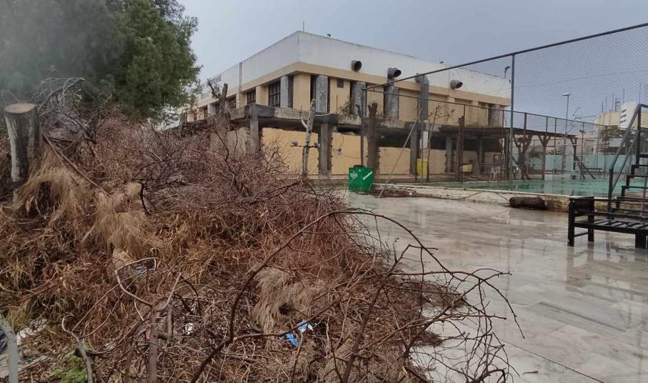 Δυστυχώς, η εικόνα της εγκατάλειψης που αποπνέει συνολικά το Αθλητικό Κέντρο, έρχεται να επιδεινωθεί ακόμη παραπάνω και από την παραμονή όλων των ξερών πλέον κορμών και κλαδιών στους ανοικτούς χώρους, περιμετρικά των γηπέδων.