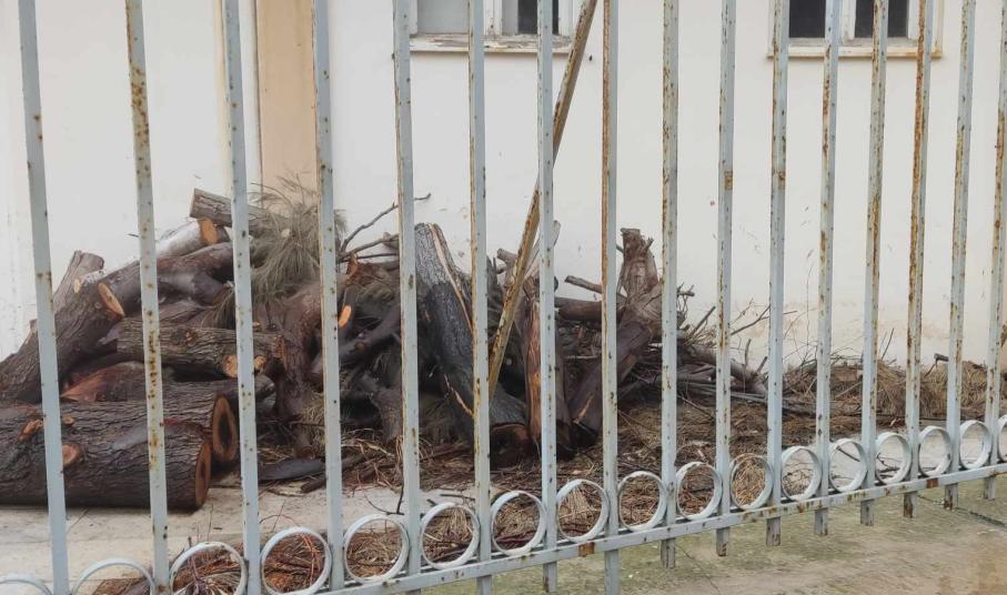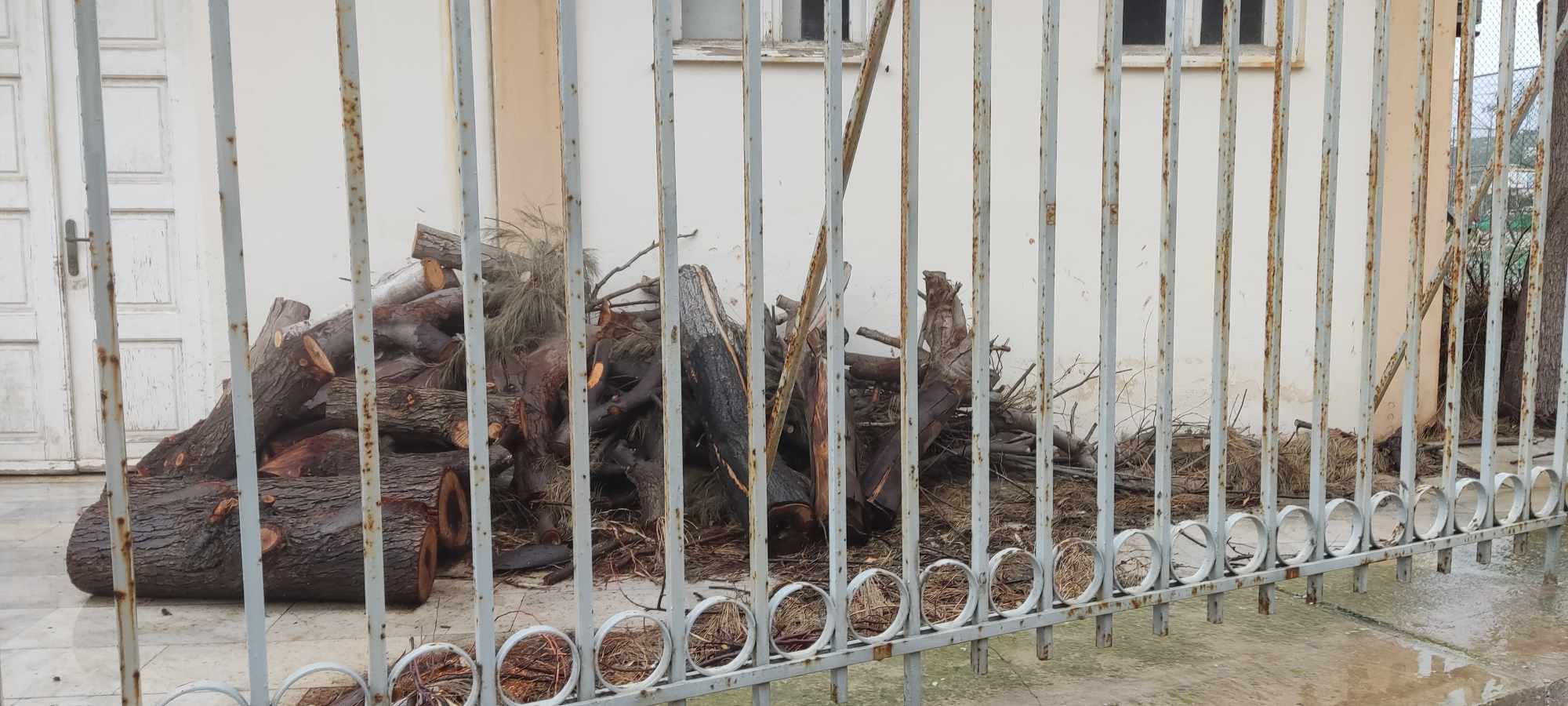 Βουνό… τα κομμένα τμήματα των δέντρων μέσα στο Αθλητικό Κέντρο