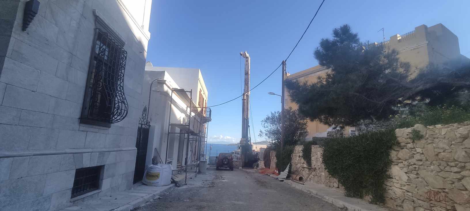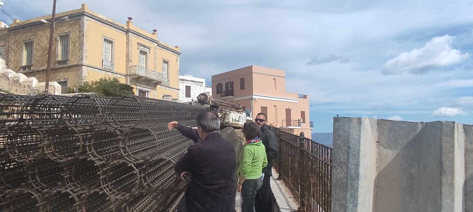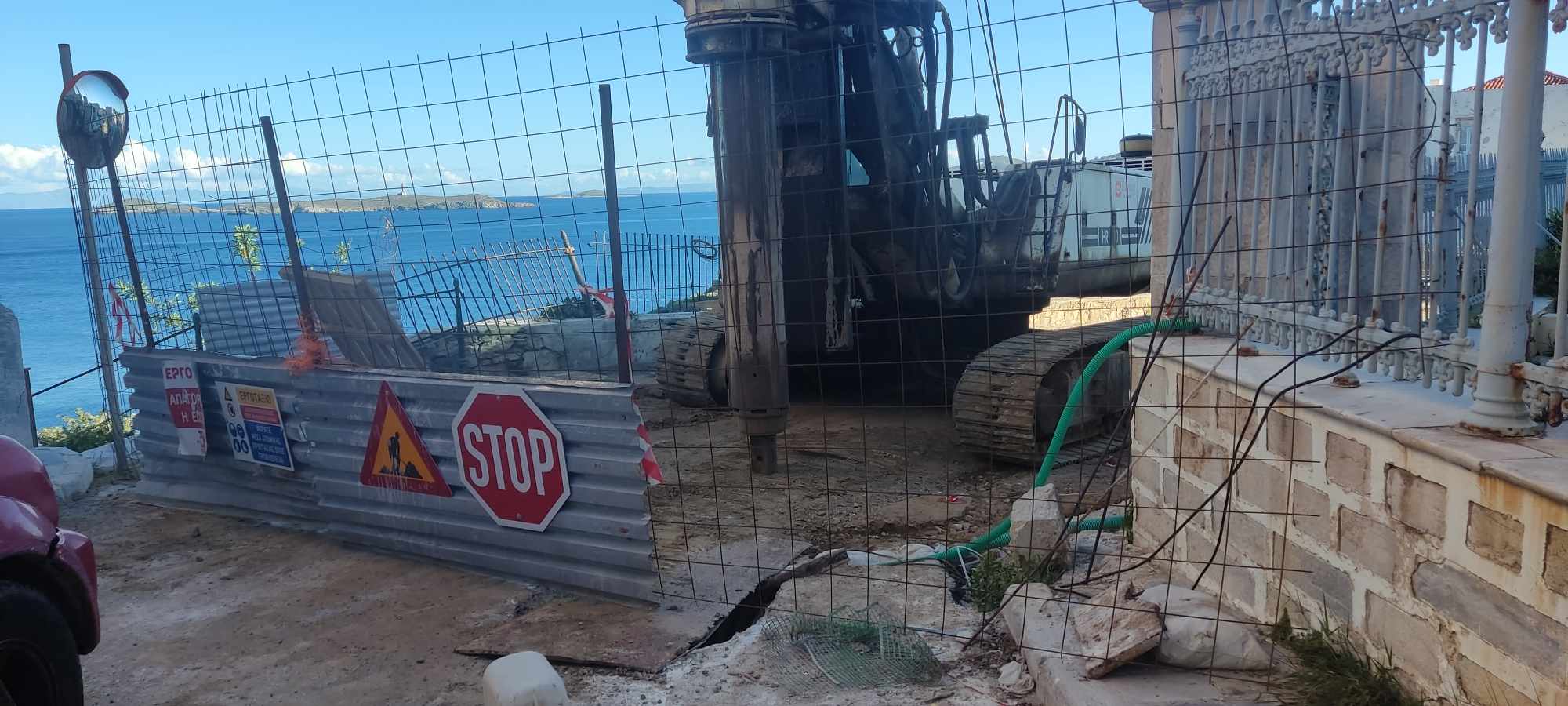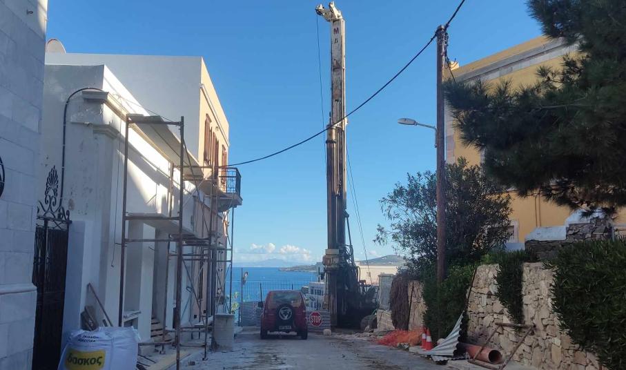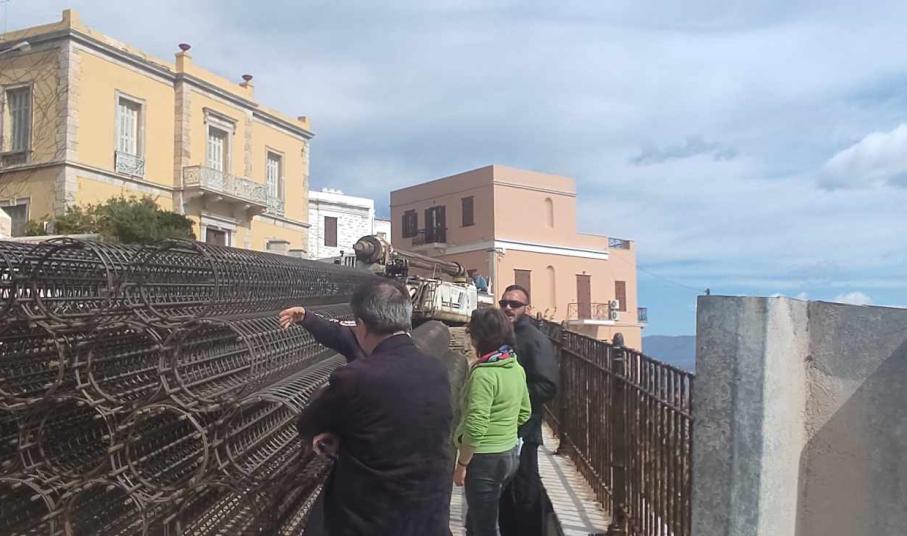 Στη Σύρο ήρθε χθες και ο εργολάβος, Δημήτρης Κρούσκος ο οποίος είναι σε συνεννόηση με τον δήμαρχο, Αλέξη Αθανασίου και τον αρμόδιο αντιδήμαρχο, Φραγκίσκο Βακόνδιο για την εξέλιξη των εργασιών. Τέλος, το σύνολο του απαραίτητου εξοπλισμού και των υλικών έχει μεταφερθεί στην περιοχή προκειμένου να γίνει το έργο, στόχος του οποίου είναι η αποσύνδεση των φορτίων του δρόμου από το τοιχίο αντιστήριξης.