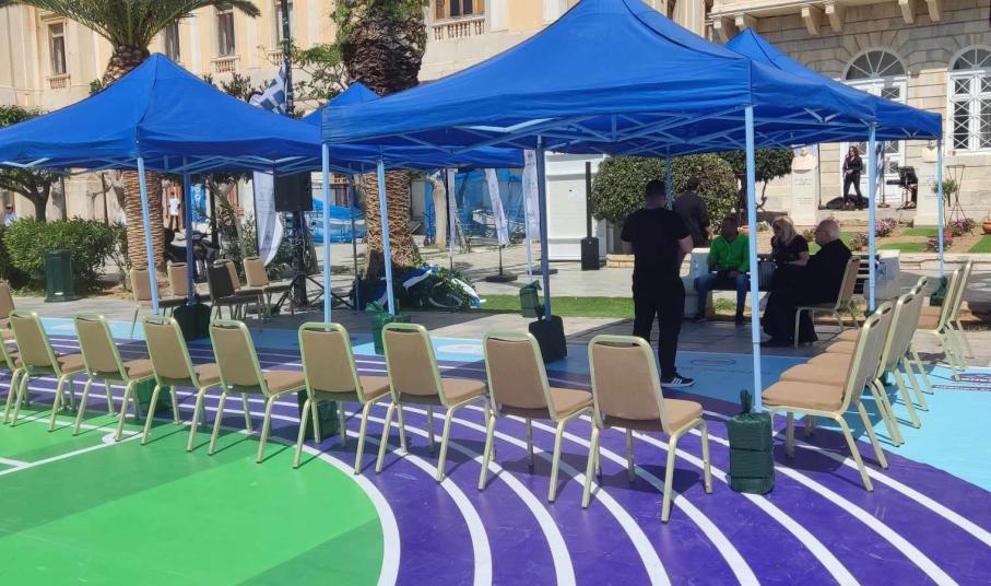 Τον καλύτερό τους εαυτό έδωσαν για την προετοιμασία και ομαλή διεξαγωγή της αθλητικής εβδομάδας “Δημήτριος Βικέλας”, ο αντιδήμαρχος Καθημερινότητας του Δήμου Σύρου - Ερμούπολης, Γιάννης Μαραγκός και οι εργάτες του Τμήματος Μικρών Έργων, όσον αφορά στις διαμορφώσεις στην πλατεία Μιαούλη.