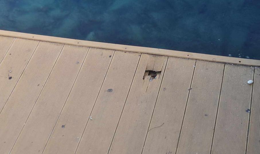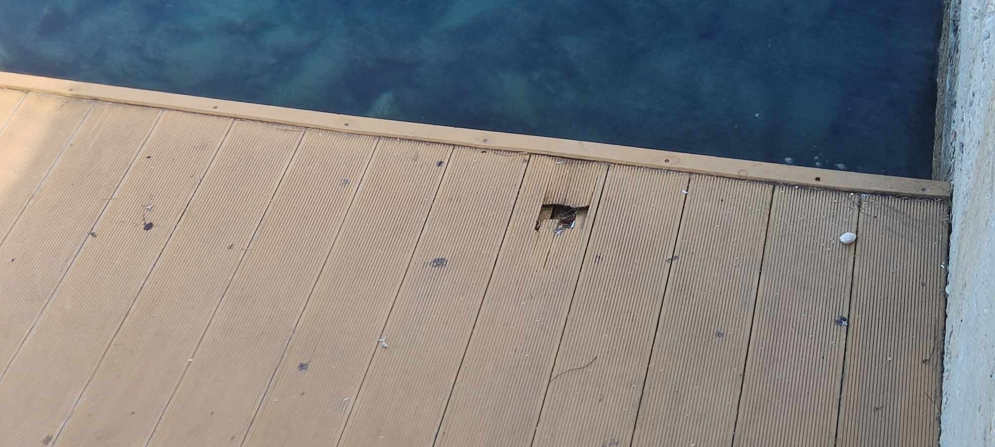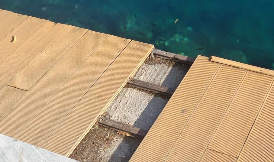 Σε ορισμένα μέρη μάλιστα, έχουν “αποκαλυφθεί” τα ξύλα που στηρίζεται το ντεκ, κάτι που δημιουργεί μικρές παγίδες για όσους πατούν πάνω σε αυτό.