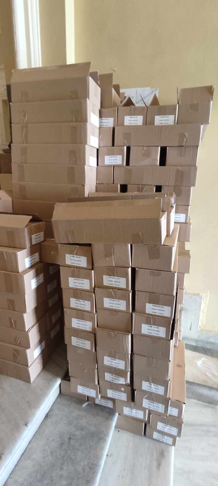 Από την έδρα της Περιφέρειας στη Σύρο προωθείται όλο το υλικό προς τους Δήμους των νησιών, για να διανεμηθεί ακολούθως στα 244 εκλογικά τμήματα που θα λειτουργήσουν στο νομό.
