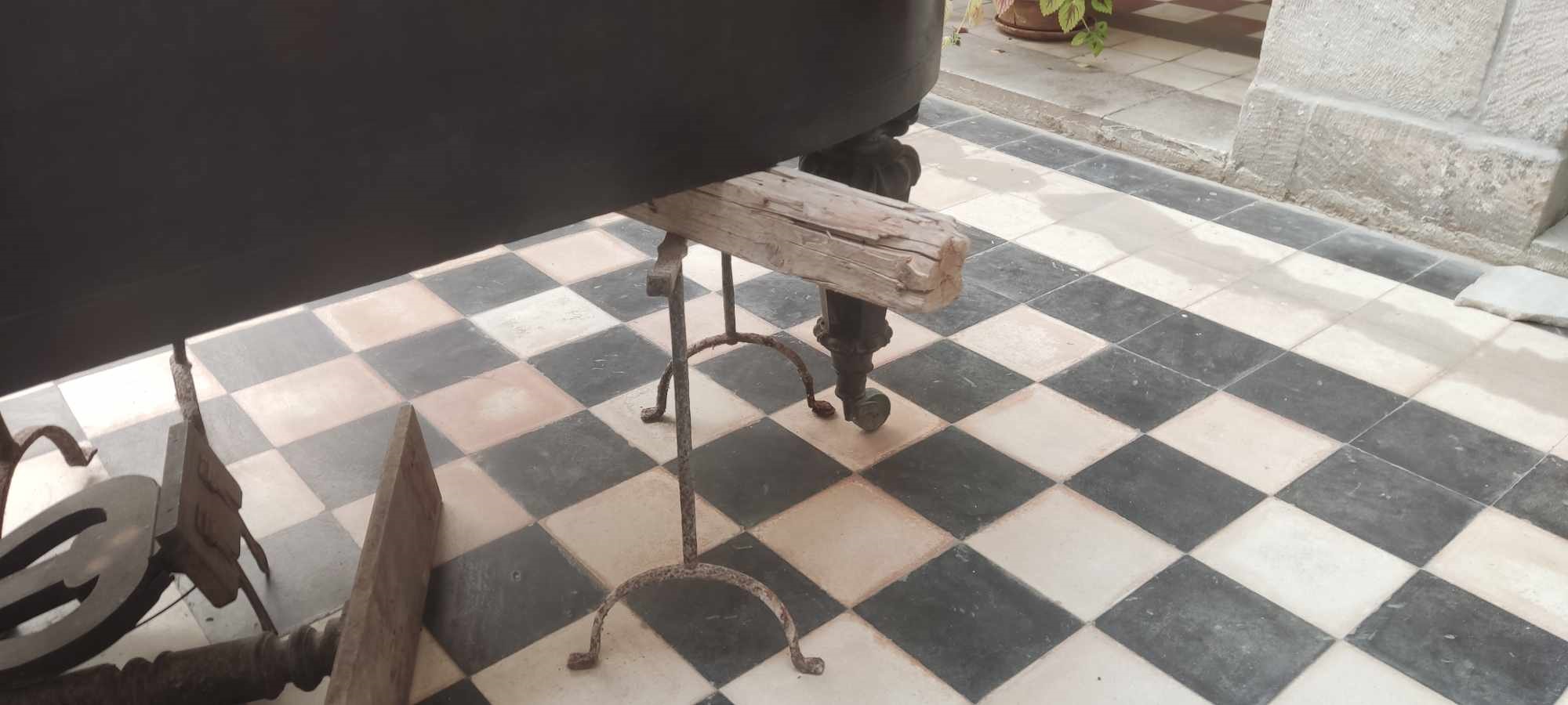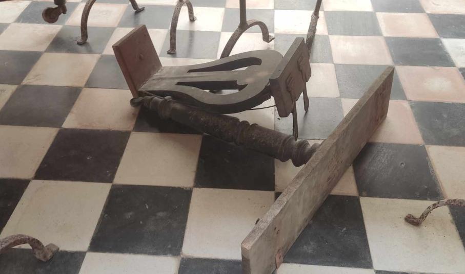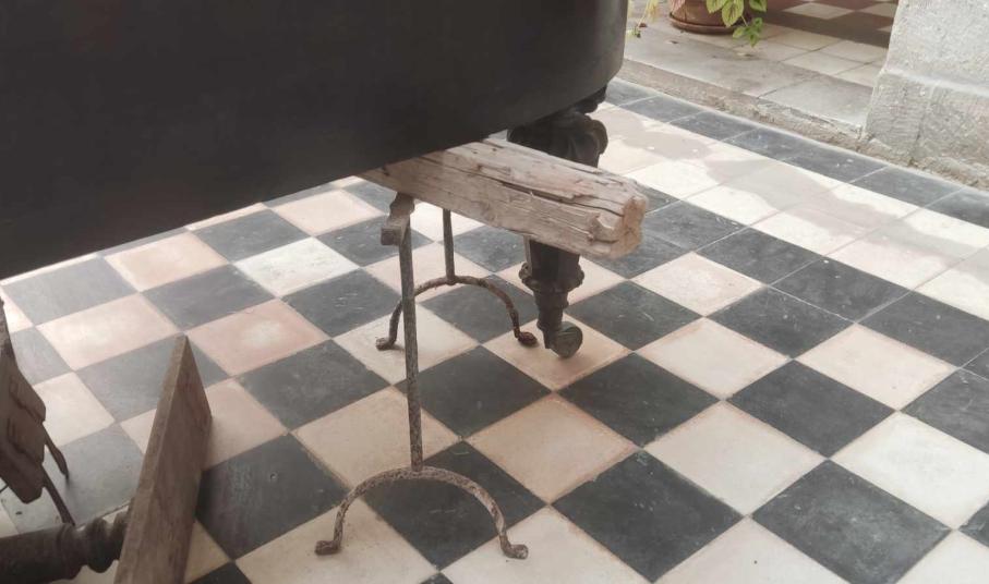 Η κατάστασή του με τις βάσεις που το υποστηρίζουν και σπασμένα τμήματά του στο πάτωμα, δεν κοσμούν… το σημείο, από το οποίο μάλιστα, περνούν καθημερινά αρκετοί επισκέπτες για να φωτογραφήσουν τους χώρους εντός του Δημαρχιακού Μεγάρου.