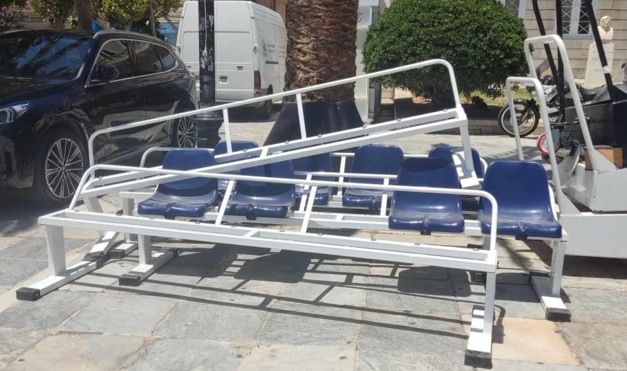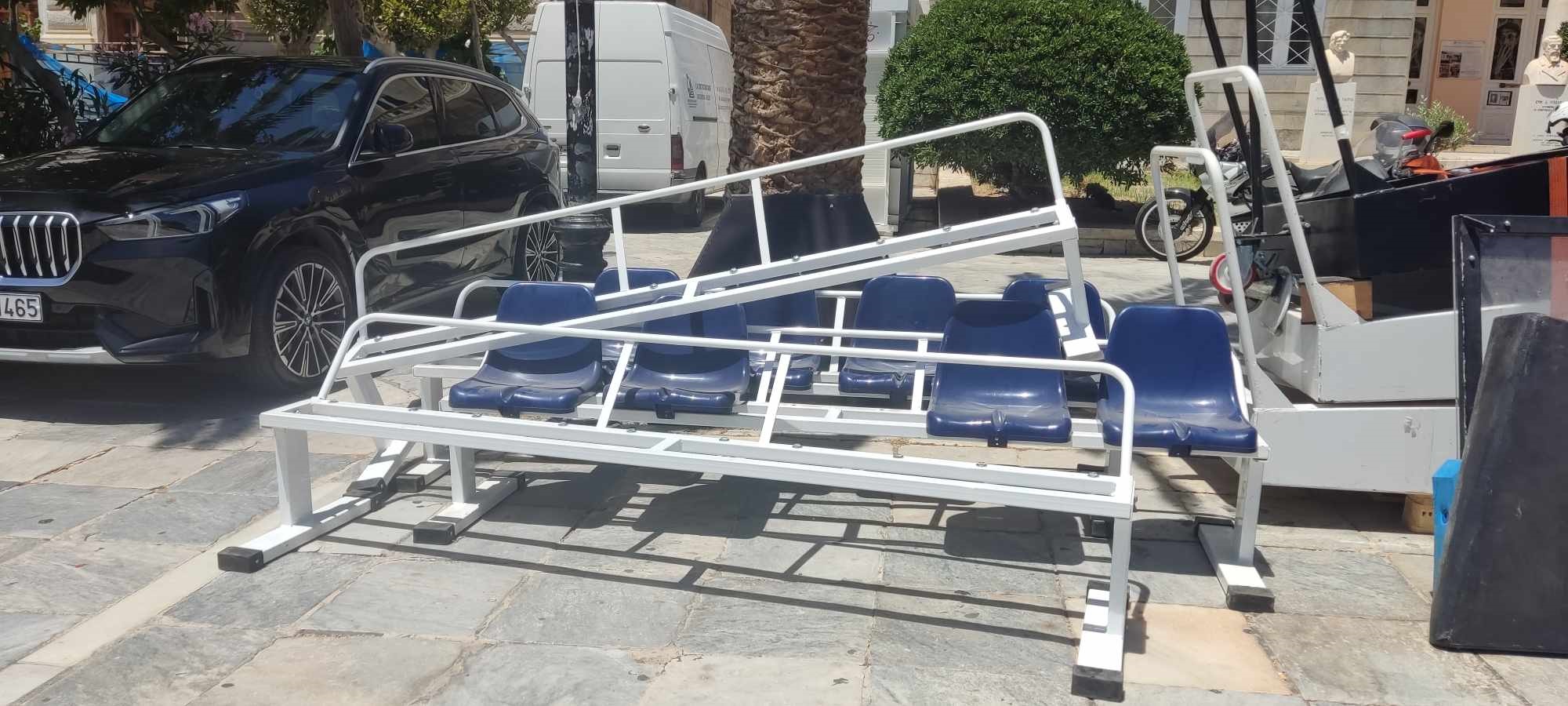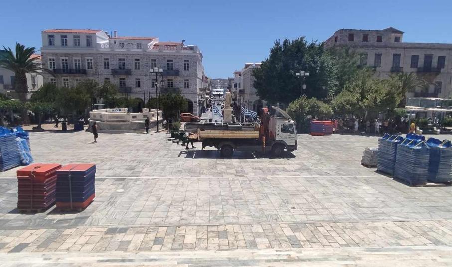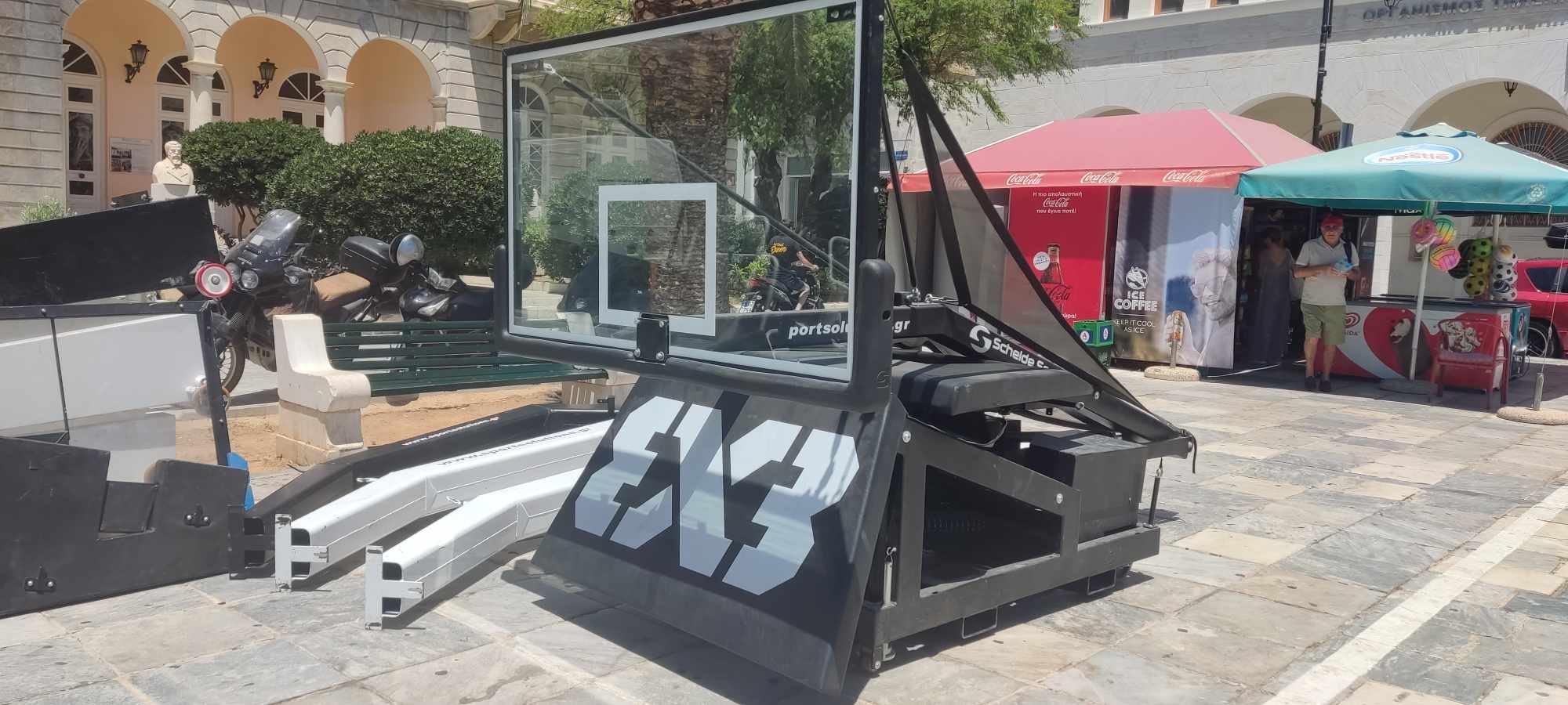 Από χθες, το μεσημέρι άρχισε η μεταφορά όλου του εξοπλισμού που είναι απαραίτητος για να “μεταμορφωθεί” η πλατεία Μιαούλη σε μπασκετικό χώρο, με τα απαιτούμενα συνεργεία να δουλεύουν συστηματικά για τη διαμόρφωση των γηπέδων. Κερκίδες, μπασκέτες, υποστυλώματα για τα καθίσματα αλλά και όσα άλλα χρειάζονται για την ομαλή και ασφαλή διεξαγωγή του, γέμισαν την πλατεία Μιαούλη.