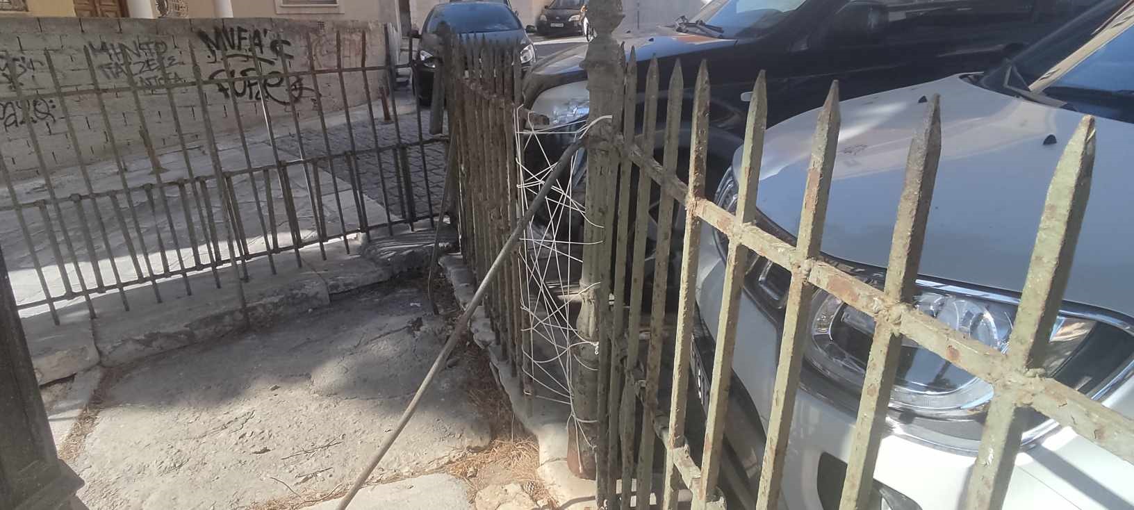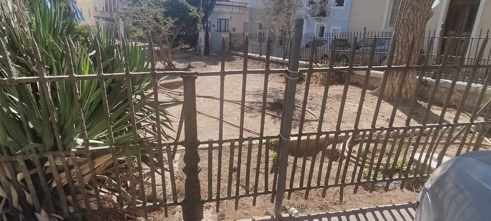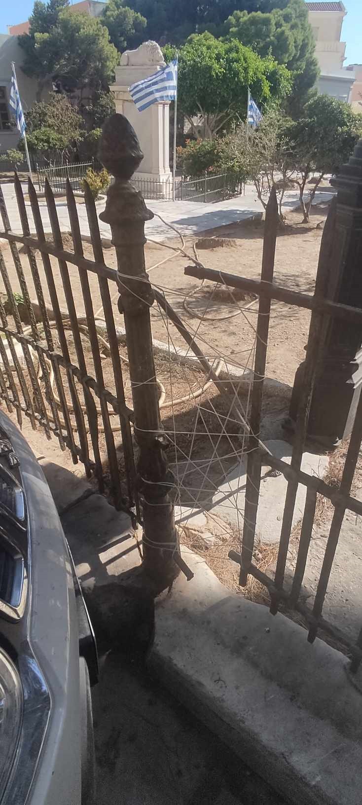 Θλίψη “γεννά” η εικόνα του κεντρικού κηπάριου της Ερμούπολης, λίγο πριν τη θέση Βαπόρια και συγκεκριμένα μπροστά από τον Ι.Ν. του Αγίου Νικολάου, καθώς η περίφραξή του, έχει υποχωρήσει ακόμη περισσότερο, συγκριτικά με το πρόσφατο παρελθόν.