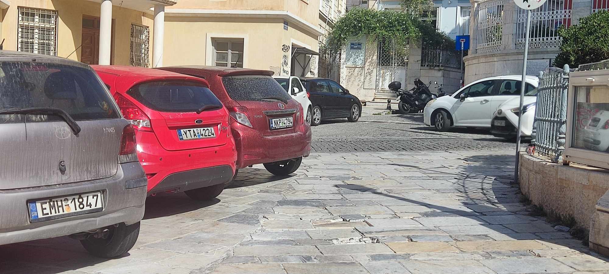 Υποβαθμίζεται συνεχώς ο παραδοσιακός χαρακτήρας αρκετών τμημάτων δρόμων, όπως μπροστά από τον Ι.Ν. του Αγίου Νικολάου Ερμούπολης