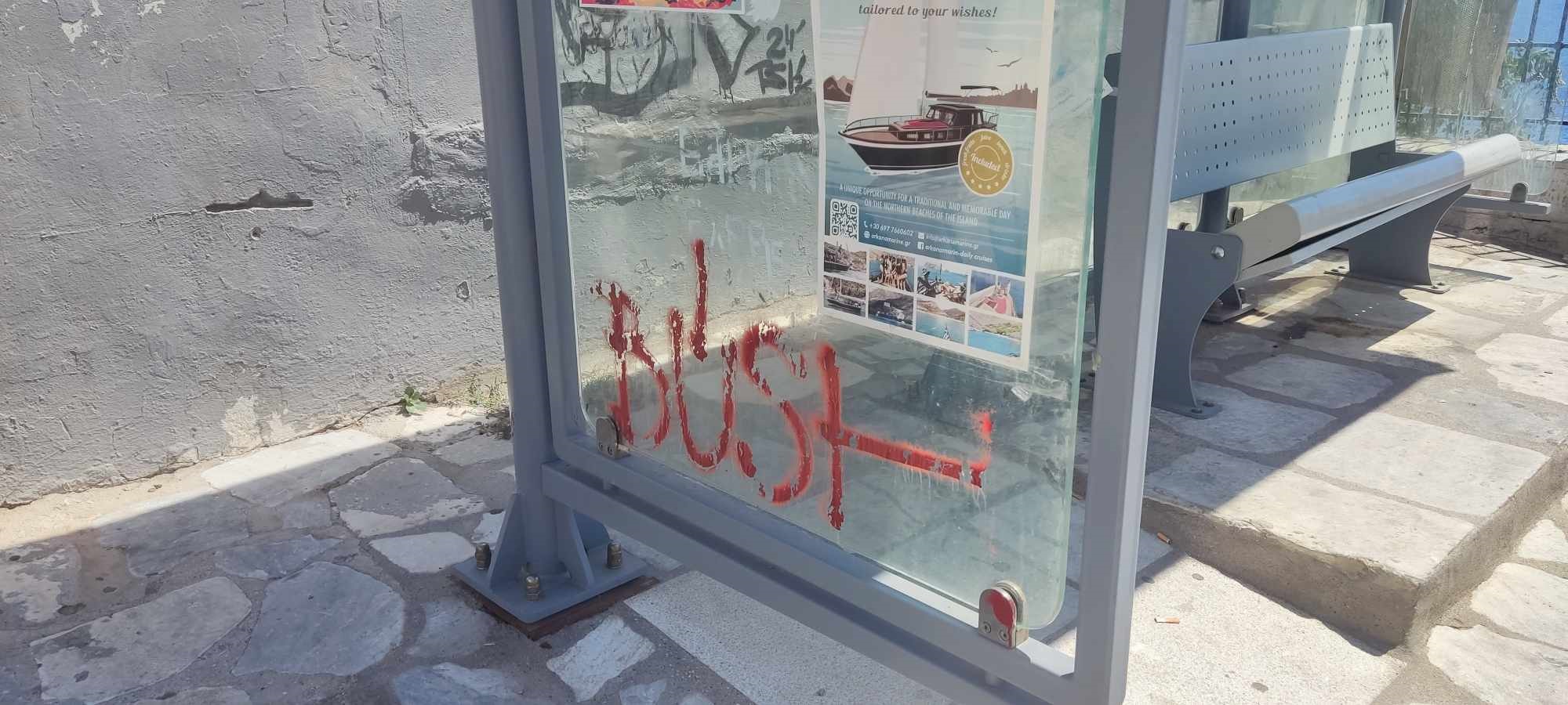 Στη… δίνη καταστροφικών ενεργειών, αγνώστων προσώπων, έχουν πέσει “θύμα” οι καινούργιες στάσεις αναμονής των επιβατών στις περιοχές της Δόξας και του Αγίου Νικολάου, με αποτέλεσμα την αισθητική υποβάθμισή τους.