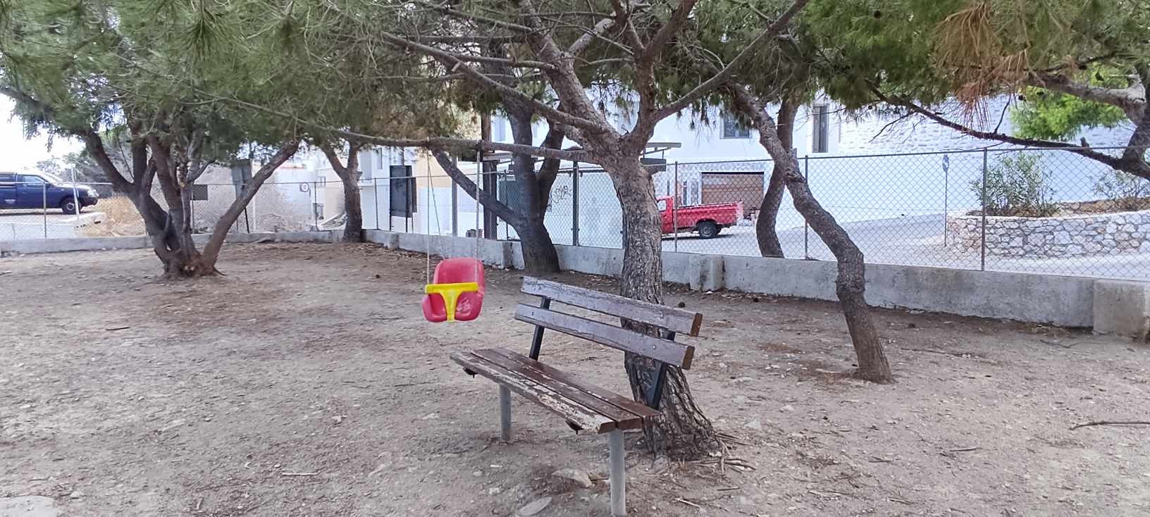 Συγκεκριμένα, η πλατεία παραμένει φροντισμένη μόνον σε ό,τι αφορά το κλάδεμα δέντρων και την απομάκρυνση χόρτων, ωστόσο, δυστυχώς, δείχνει ακατάλληλη για την ασφαλή παραμονή των κατοίκων. Ειδικότερα, η είσοδος παρουσιάζει μεγάλες ανομοιομορφίες, ενώ και η περίφραξη σε πολλά σημεία είναι κατεστραμμένη. Παράλληλα, απουσία κατάλληλων παιχνιδιών για τα μικρά παιδιά, βρίσκονται αυτοσχέδιες κούνιες, κρεμασμένες σε δέντρα, κάτι που θα προκαλέσει ατύχημα, στην περίπτωση που ένα παιδί δεν έχει επίβλεψη από γονέα και προκληθεί πτώση του στο χωμάτινο και γεμάτο πέτρες έδαφος. Επιπλέον, απουσιάζει σύγχρονος αστικός εξοπλισμός, όπως παγκάκια στον χώρο, ενώ υπάρχουν μόνο δύο πολύ παλιά.