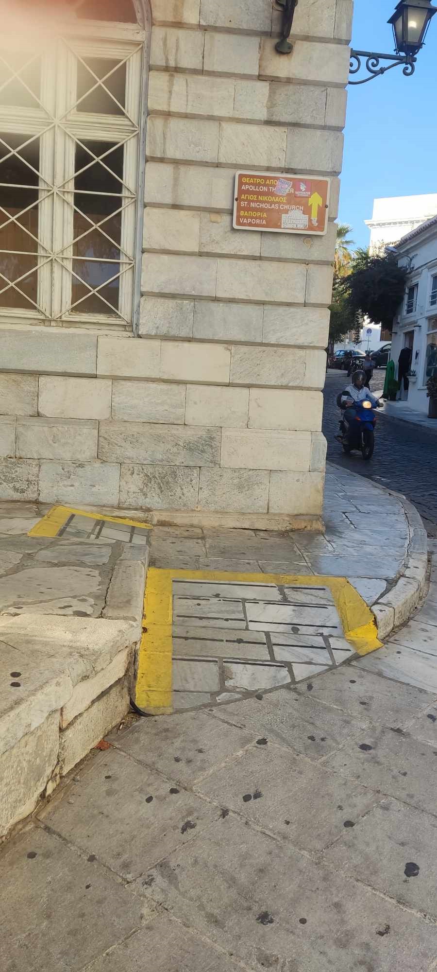 Η έντονη διαγράμμιση που “φωτίζει” τα σημεία που οι ράμπες βρίσκονται, βοηθούν και προειδοποιούν και τους οδηγούς μηχανών αλλά και αυτοκινήτων, ώστε να μην παρκάρουν παράνομα και να μην αφαιρούν το δικαίωμα της μετακίνησης σε ΑΜΕΑ.