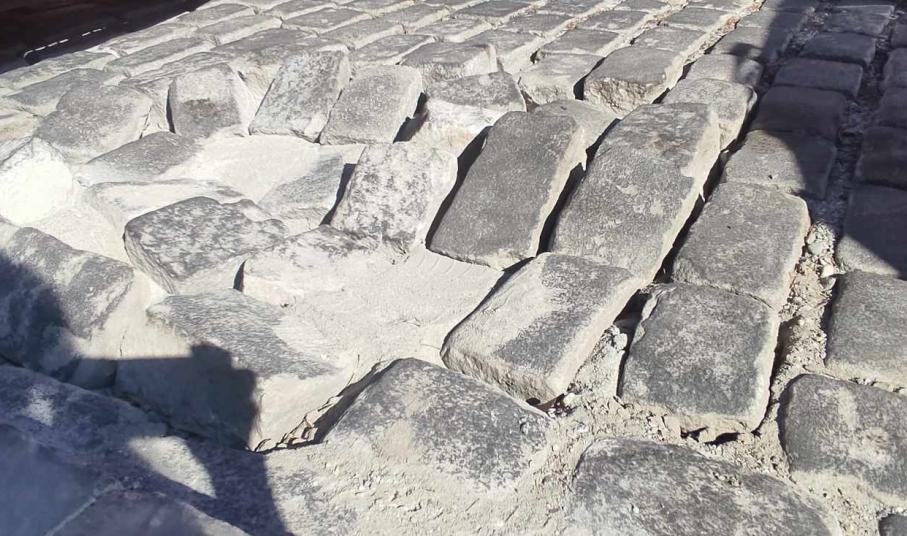 Συγκεκριμένα, ο γρανίτης δείχνει και είναι σε αρκετά τμήματα αποκολλημένος από τη βάση του δρόμου, με αποτέλεσμα να έχουν διαμορφωθεί κενά, ανομοιομορφίες και λακκούβες, που δυσχεραίνουν σοβαρά το βάδισμα των πεζών. Μάλιστα, τις βραδινές ώρες που δεν είναι ευδιάκριτα τα “διαλυμένα” τμήματα, δεν είναι λίγες οι φορές που πολίτες έχουν χάσει την ισορροπία τους και έχουν τραυματιστεί. Ωστόσο, επικινδυνότητα παρουσιάζεται και για τους οδηγούς μηχανών, αφού ορισμένες “πλάκες” έχουν σηκωθεί από τις βάσεις τους.