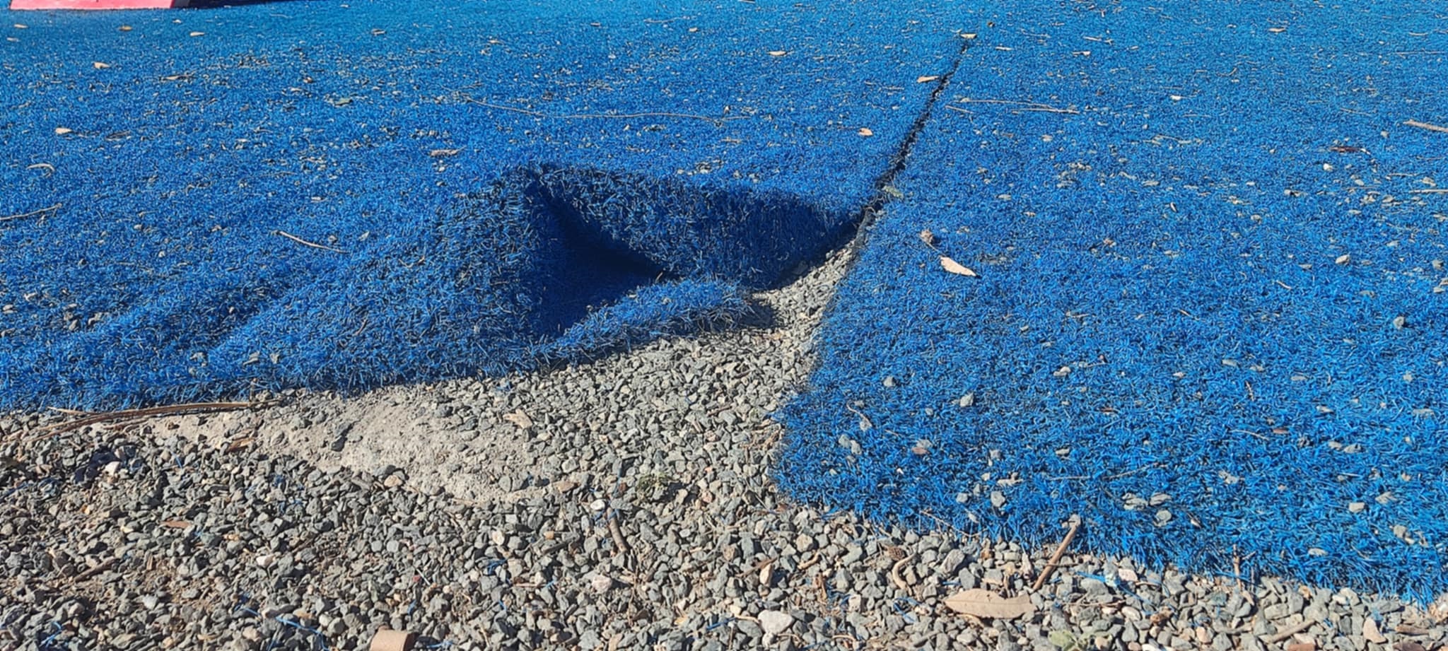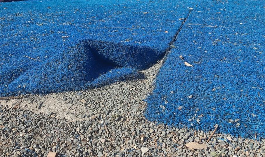 Ειδικότερα, σε ένα σημείο έχουν σπάσει οι κούνιες και έχει παραμείνει η βάση μόνο, ενώ σε άλλα, έχει σηκωθεί ο ειδικός τάπητας και έχουν συγκεντρωθεί ξερά χόρτα σε βάσεις παιχνιδιών. Παράλληλα, παραμένουν εκτεθειμένα δύο σίδερα σε κεντρικό σημείο, πάνω στα οποία παλαιότερα στηριζόταν η περίφραξη, ενώ το ειδικό πλέγμα που οριοθετεί τον χώρο της Α΄ Κλειστής Αίθουσας έχει καταστραφεί και υπάρχει κίνδυνος ατυχήματος για παιδί που θα διαφύγει της προσοχής του γονέα του.