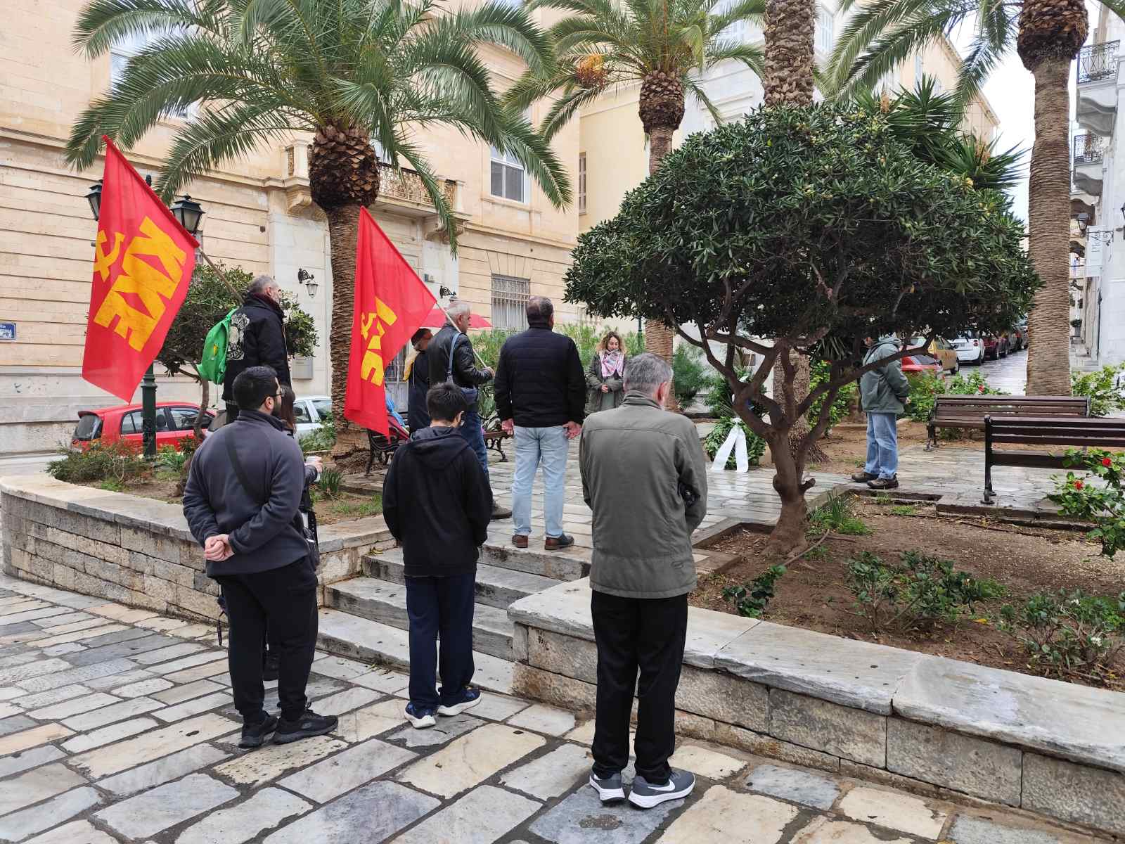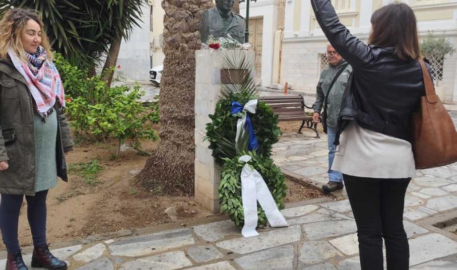 Κατά τη χθεσινή επέτειο του Πολυτεχνείου μέλη και φίλοι της ΚΟΒ Σύρου του ΚΚΕ και της ΟΒ Σύρου της ΚΝΕ πραγματοποίησαν κατάθεση στεφάνου στο μνημείο του Σπύρου Μουστακλή, στην πλατεία Τσιροπινά.