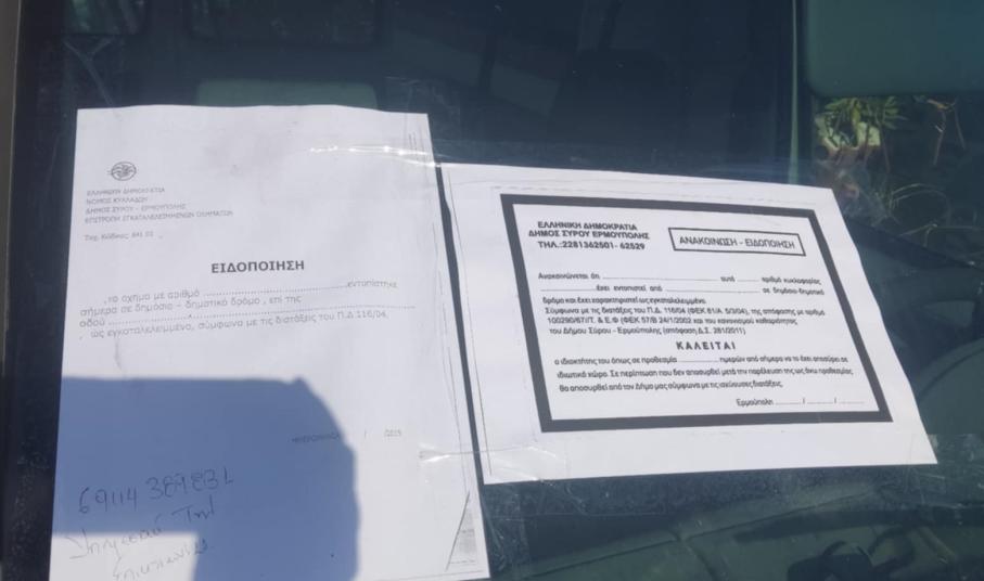 Ειδικότερα, χθες, αρμόδιοι υπάλληλοι του Δήμου, υπό την καθοδήγηση του αντιδημάρχου, Νίκου Σκευοφύλακα, προχώρησαν στην ανάρτηση νέων ειδοποιητηρίων στα παρμπρίζ των εγκαταλελειμμένων οχημάτων στην περιοχή του Μάννα, ενώ αμέσως μετά, ακολούθησε η περιοχή της Αζολίμνου και σήμερα, βρίσκονται στην Άνω Σύρο για ανάλογη δουλειά.