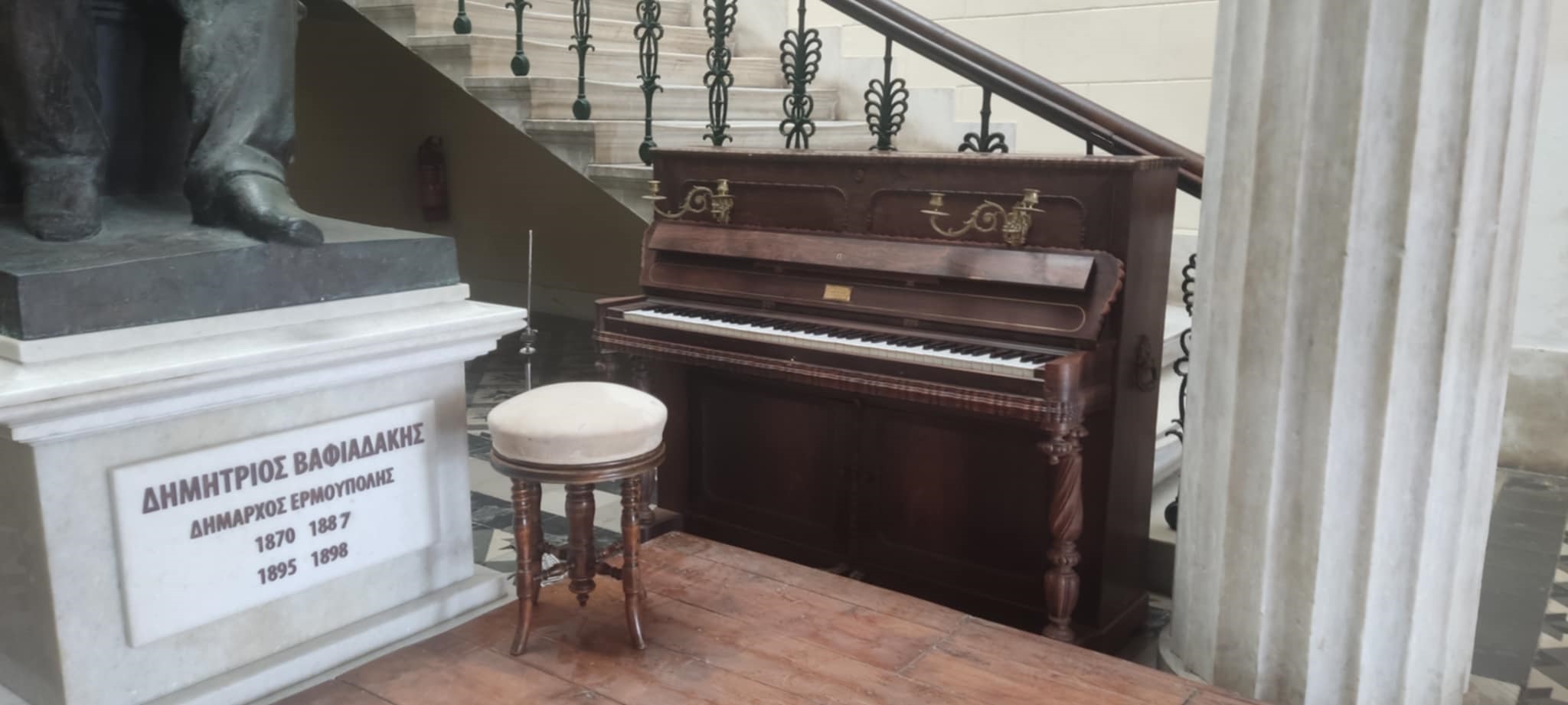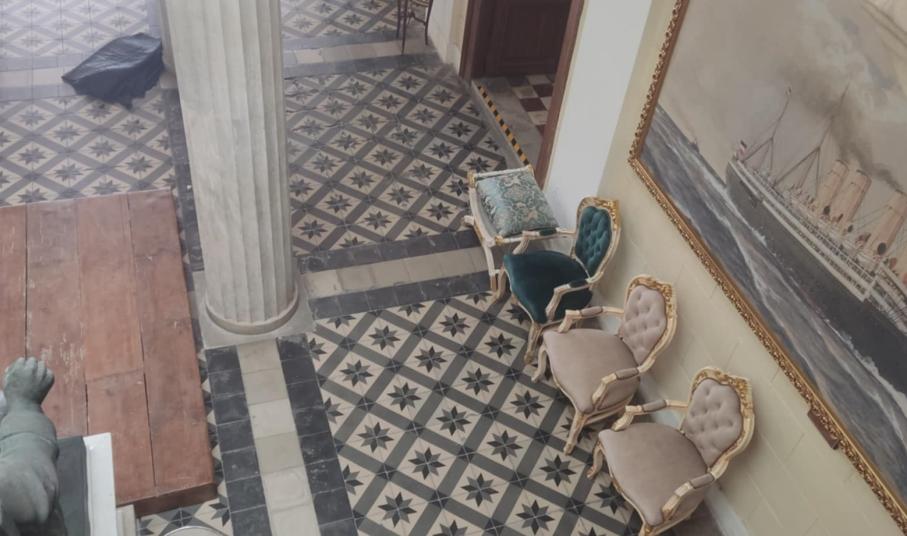 Ένα υπέροχο σκηνικό διαμορφώνεται στον πρώτο όροφο του Δημαρχιακού Μεγάρου Σύρου, που μεταφέρει όλους στην Ερμούπολη του 1930, στο πλαίσιο των γυρισμάτων της “Μεγάλης Χίμαιρας”.