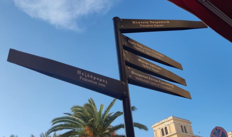 Τοποθετήθηκαν χθες και προχθές, οι νέες πληροφοριακές πινακίδες στο κέντρο της Ερμούπολης, στο πλαίσιο του έργου του Open Mall, ώστε να ενημερώνονται οι επισκέπτες κυρίως, για το πού βρίσκεται ο πεζόδρομος με τα εμπορικά καταστήματα, καθώς όμως και πλατείες, αλλά και πολιτιστικοί χώροι, όπως και κεντρικοί ναοί της πόλης.