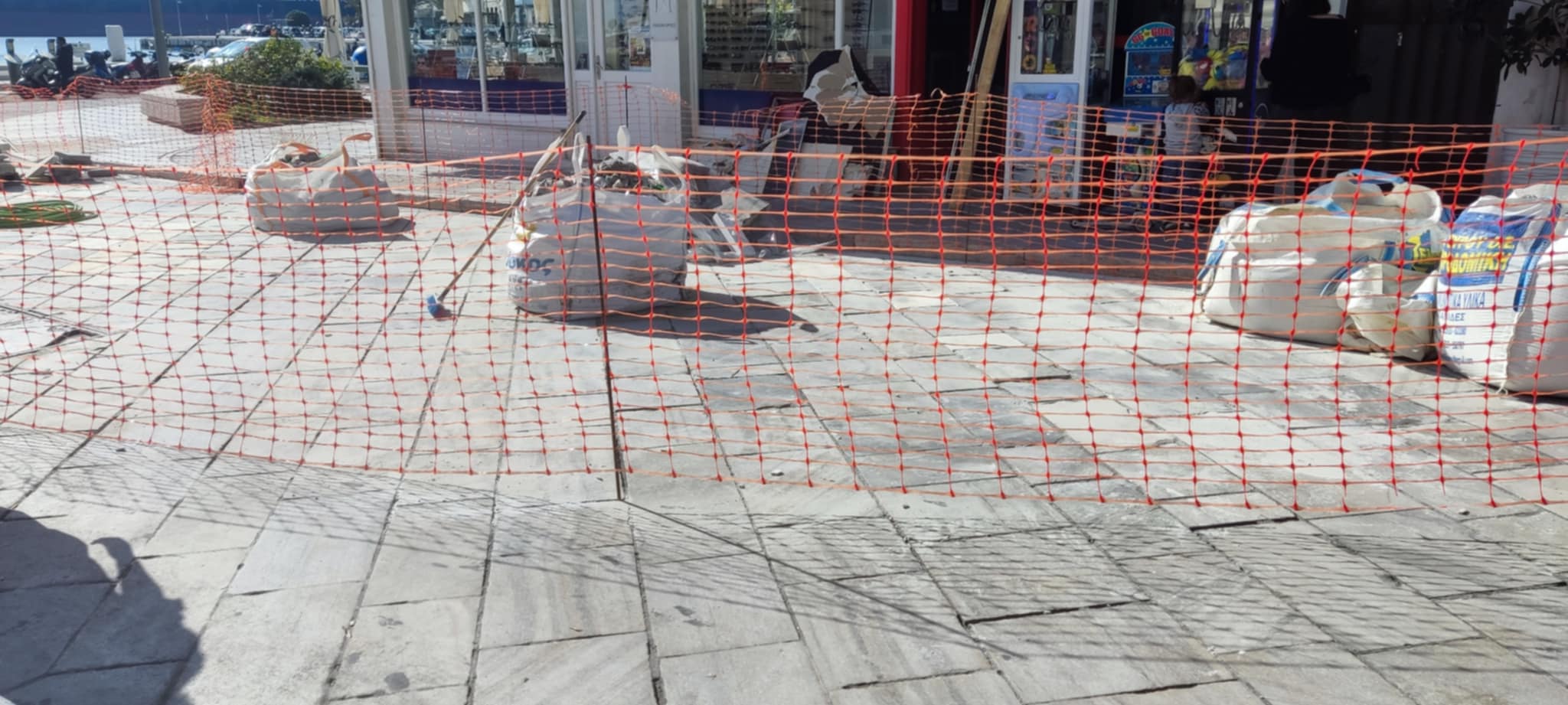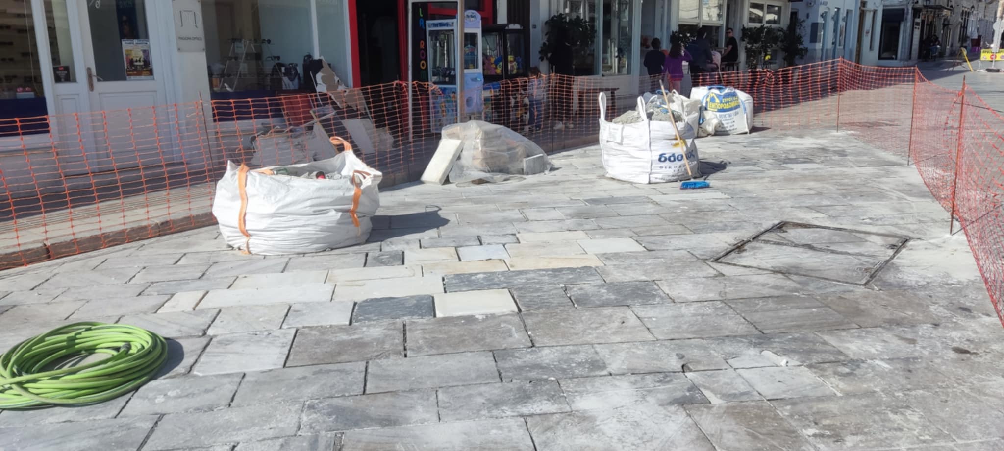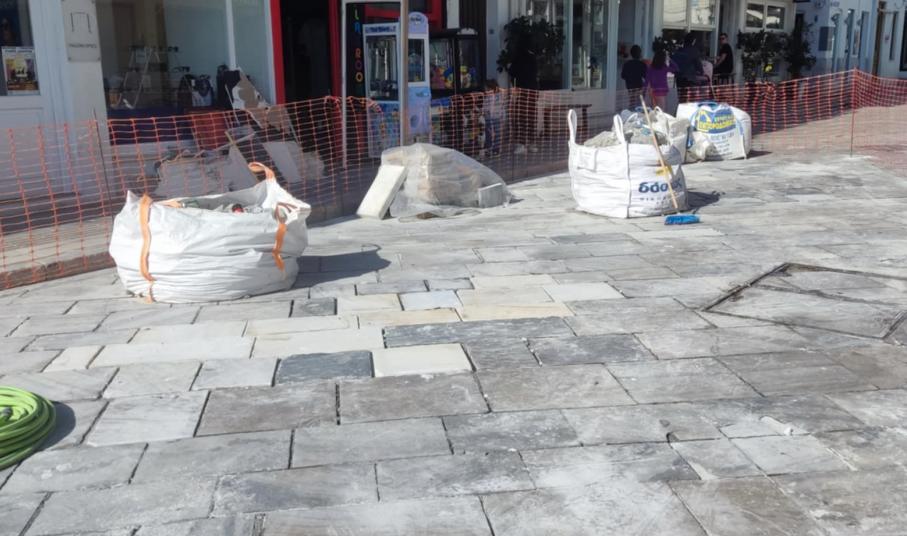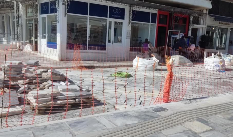 Η εργολαβία που έχει αναλάβει να καλύψει το πλακόστρωτο όσον αφορά στις απαιτούμενες επισκευές για την ομαλή διέλευση οδηγών και πεζών, προχωρά μέχρι σήμερα τις προγραμματισμένες αποκαταστάσεις.