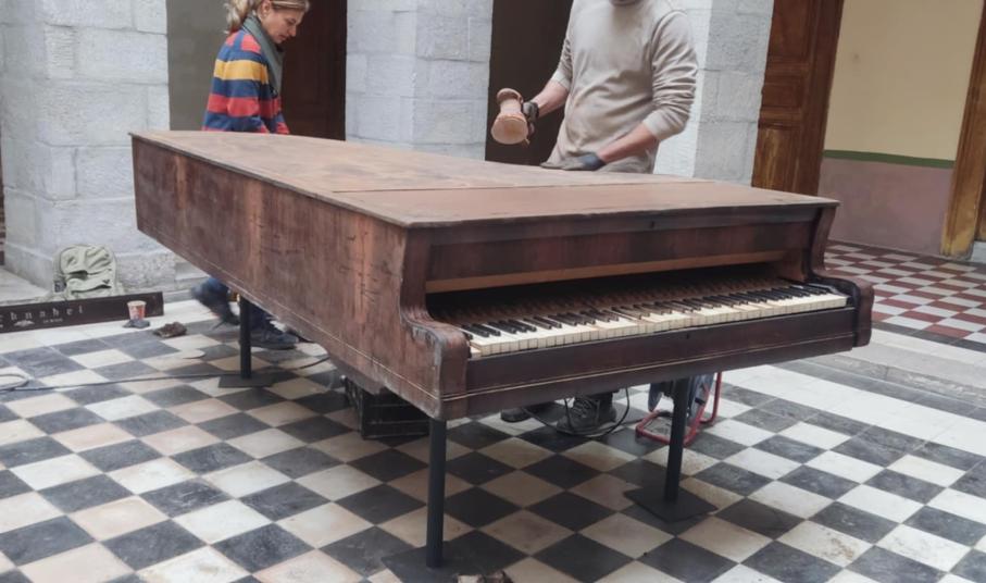 Πρόκειται για ένα πιάνο που περιήλθε στην κατοχή του Δήμου προ μηνών, μέσω δωρεάς και τοποθετήθηκε εξ αρχής στον ανοικτό χώρο του Δημαρχείου, τον οποίο και θα κοσμεί. Σύμφωνα με πληροφορίες της εφημερίδας, οι συντηρήσεις αφορούν κυρίως στη βελτίωση της εξωτερικής εικόνας του, η οποία περιλαμβάνει ήπιες παρεμβάσεις με τριβείο σε όλες τις επιφάνειές του, καθώς και συντηρήσεις στον χρωματισμό του (βερνίκι). Επίσης, τα πόδια του πιάνου αφαιρέθηκαν για να γίνουν οι απαιτούμενες βελτιώσεις σε εργαστήριο και θα επανατοποθετηθούν για διακοσμητικούς κυρίως λόγους αφού για το πιάνο έγιναν νέες βάσεις.