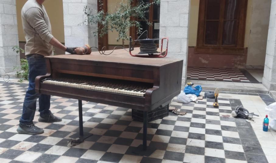 Οι πολυπόθητες εργασίες συντήρησης στο παλιό πιάνο – αντίκα που βρίσκεται σε ένα από τα αίθρια του Δημαρχιακού Μεγάρου Σύρου – Ερμούπολης βρίσκονται σε εξέλιξη τις τελευταίες ημέρες, υπό την επίβλεψη και καθοδήγηση της συντηρήτριας, Αγγελικής Κεχαγιά.