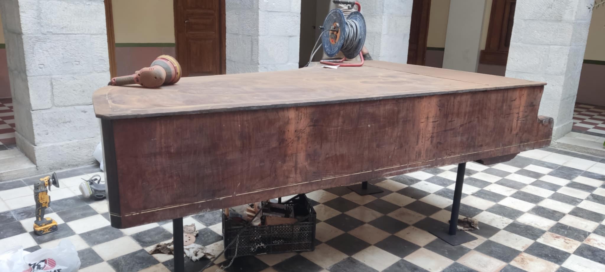 Οι εργασίες προχωρούν με εντατικούς ρυθμούς και εντός των επόμενων ημερών ο Δήμος Σύρου – Ερμούπολης θα έχει το πιάνο – αντίκα συντηρημένο.