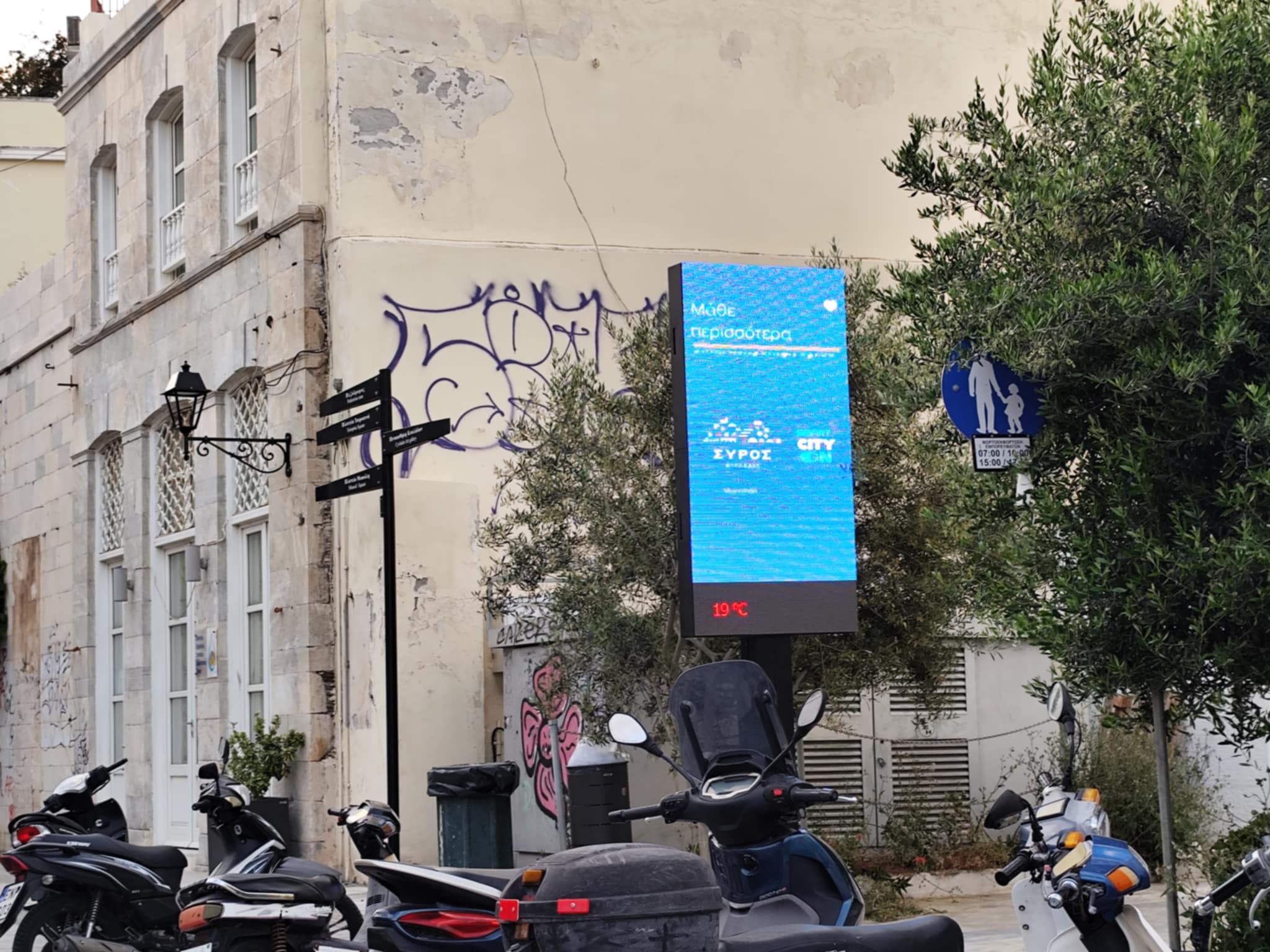 Συμπληρώνεται ο εξοπλισμός του Open Mall στην Ερμούπολη της Σύρου, για την ενίσχυση της εμπορικής ταυτότητάς της, ώστε να τονωθεί σταδιακά η αγορά και οι εισερχόμενοι στον κεντρικό πεζόδρομο να λαμβάνουν χρήσιμη πληροφόρηση για τη λειτουργία των καταστημάτων και τις προσφορές τους.
