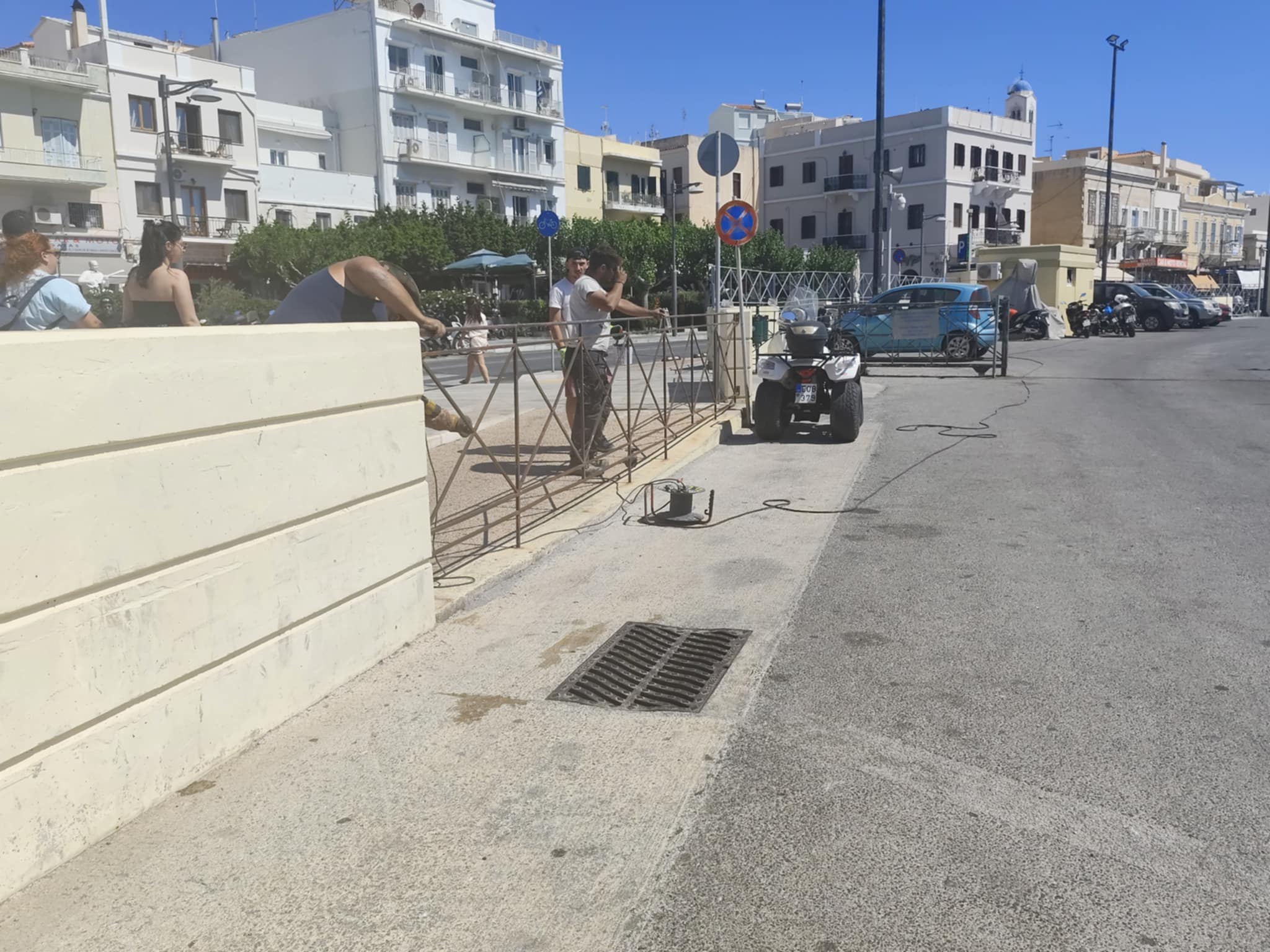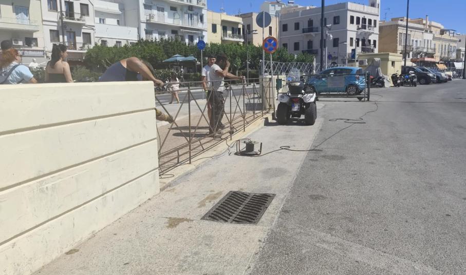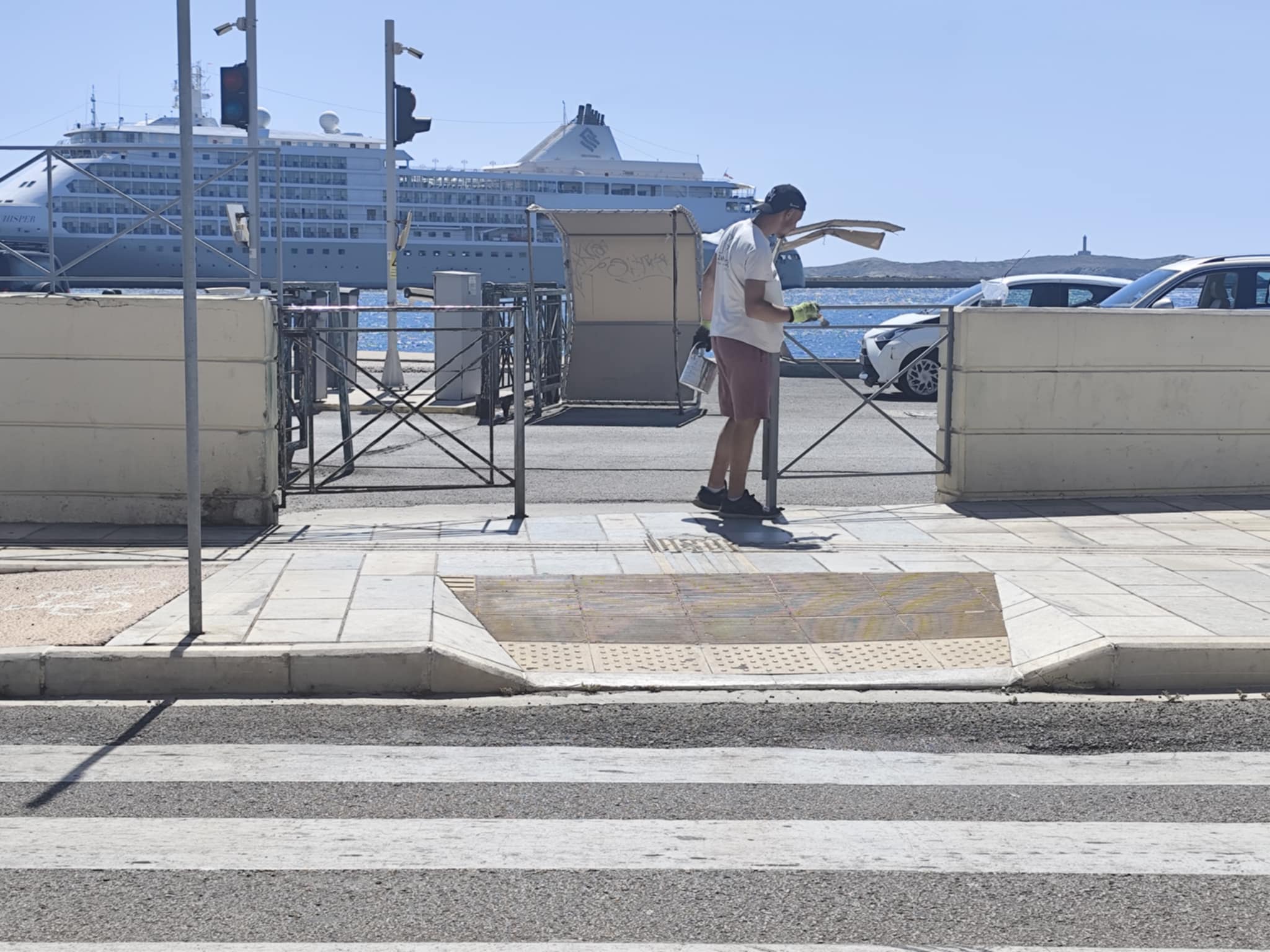 Σε εξέλιξη είναι οι εργασίες βαψίματος της περίφραξης στο λιμάνι της Ερμούπολης τις τελευταίες ημέρες, προκειμένου να ανανεωθεί η εικόνα, τόσο για τους κατοίκους, όσο και για τους επισκέπτες.