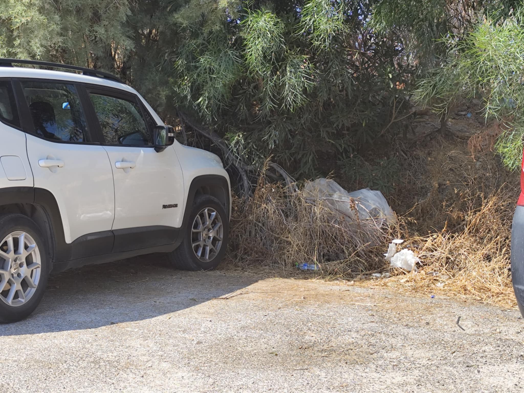 Ειδικότερα, σε όλη την έκταση των ορίων του χώρου στάθμευσης και στην εσωτερική πλευρά του parking όπου και οδηγοί αφήνουν τα οχήματά τους, διαπιστώνονται ξερά χόρτα που δεν έχουν απομακρυνθεί από το σημείο.