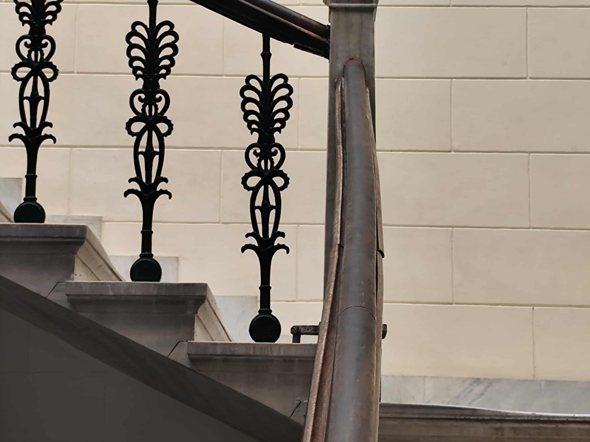 Πρέπει να σημειωθεί πως η συγκεκριμένη κεντρική κλίμακα έχει μνημειακό χαρακτήρα, καθώς δεν διαθέτει βάση και “κουμπώνει” το ένα σκαλοπάτι με το άλλο.