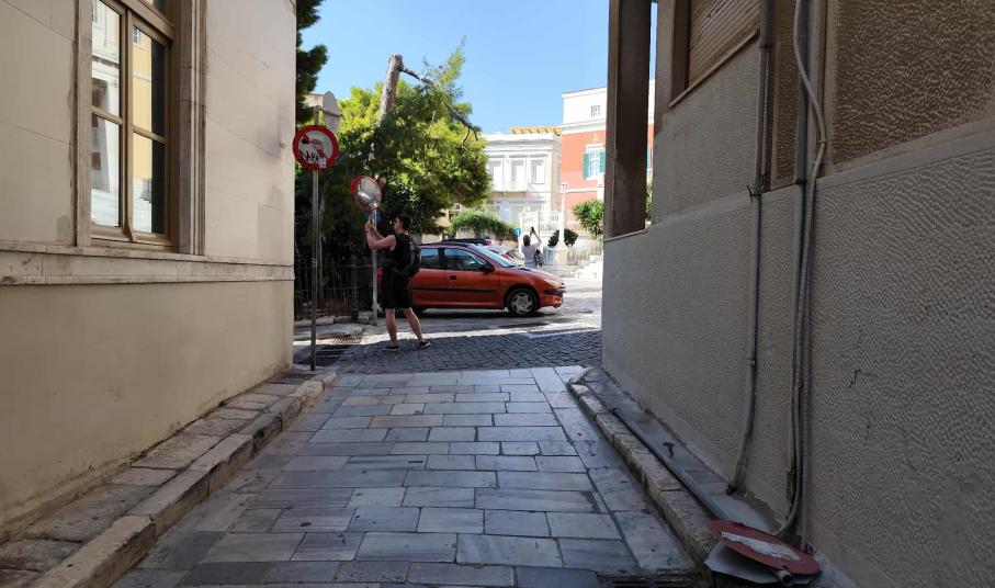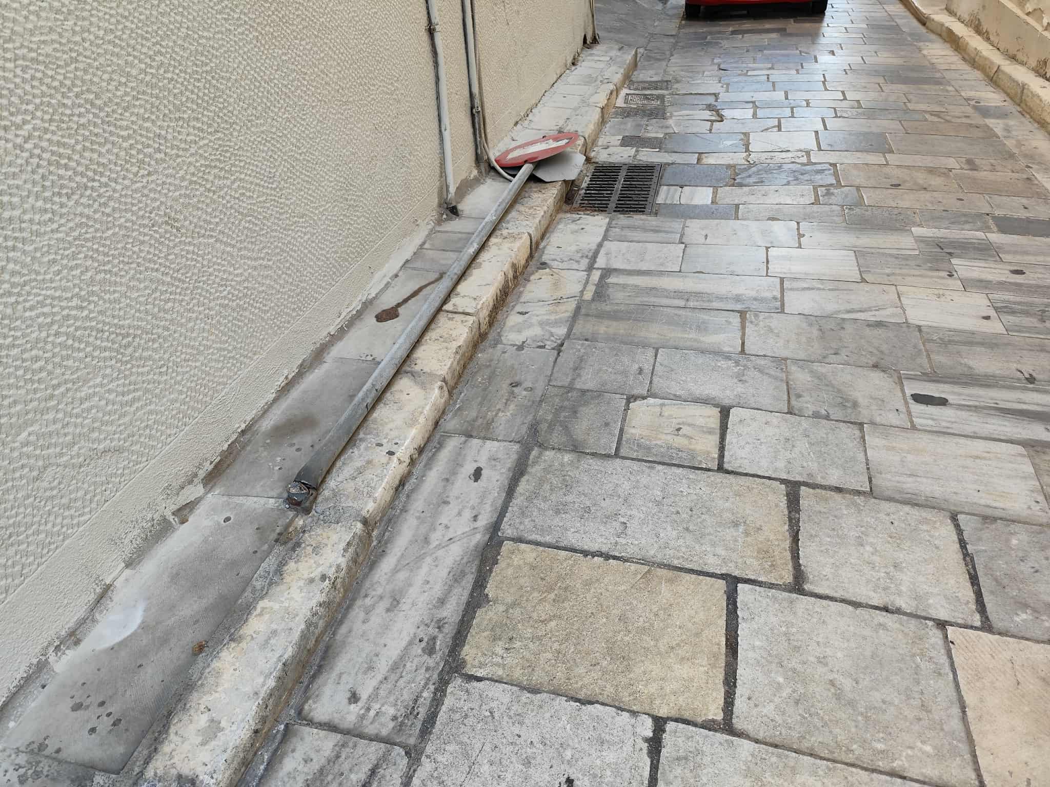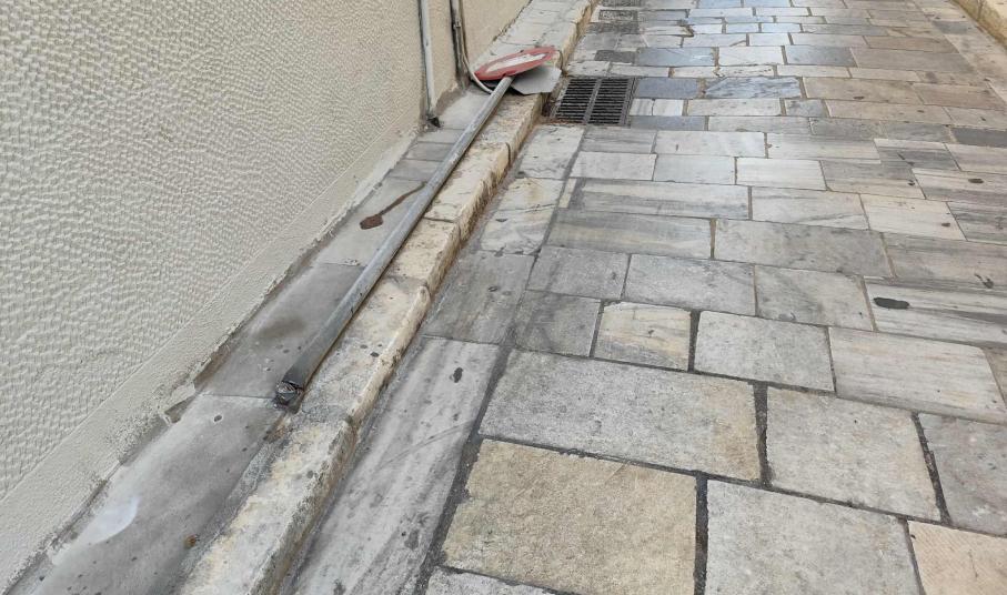 Συγκεκριμένα, το απαγορευτικό σήμα στο ύψος της συμβολής της μικρής οδού με την άνοδο προς τον ιερό ναό του Αγίου Νικολάου, βανδαλίστηκε, με αποτέλεσμα να μην βρίσκεται στη θέση του. Όπως φαίνεται από το φωτογραφικό υλικό της “Κοινής Γνώμης”, η πινακίδα του ΚΟΚ έχει σπάσει στη βάση της και ως εκ τούτου, χρειάζεται να τοποθετηθεί νέα. Σημειώνεται πως το σήμα ήταν πακτωμένο στο πεζοδρόμιο, γεγονός που καταδεικνύει την ανάγκη για αφαίρεση και του παλιού σιδερένιου τμήματος, ώστε να αποφευχθεί ατύχημα σε πεζό, αφού κατά τις βραδινές ώρες αυτό δεν διακρίνεται.
