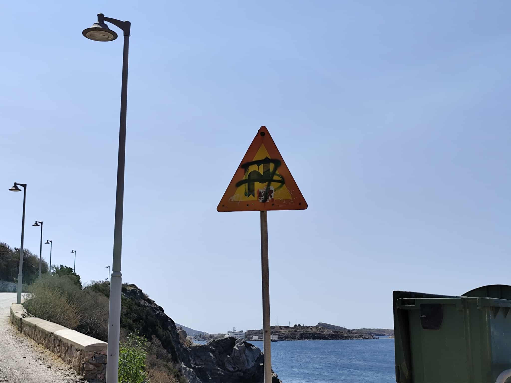 Όπως αναδεικνύεται με το φωτορεπορτάζ της “Κοινής Γνώμης”, αρκετές πινακίδες του ΚΟΚ είναι βαμμένες με σπρέι και μάλιστα σε όλη την επιφάνειά τους, με αποτέλεσμα να μην μπορεί να ενημερωθεί ο διερχόμενος οδηγός και κυρίως ο επισκέπτης για πιθανή απότομη στροφή και απότομη κλίση του δρόμου. Χαρακτηριστικό είναι το παράδειγμα των σχετικών πινακίδων στο τέλος της παραλίας του Φοίνικα και επίσης, λίγα μέτρα πριν την παραλία του Βούλγαρη.