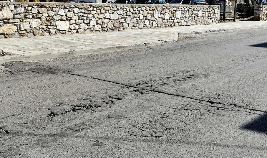 Συγκεκριμένα, μικρές καθιζήσεις, αποκόλληση ασφάλτου καθώς επίσης, λακκούβες και πάσης φύσεως φθορές διαπιστώνονται σε όλη την έκτασή του.