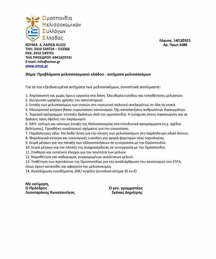 - Αναπλήρωση του χαμένου εισοδήματος για το 2025 σε όλα τα προϊόντα που έχουν καταρρεύσει οι τιμές τους κάτω από το κόστος παραγωγής.