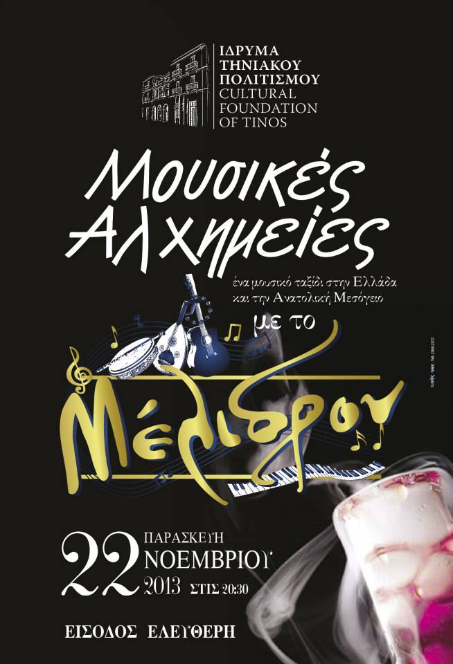 Το Μουσικό Συγκρότημα «Μέλιδρον» παρουσιάζει αύριο στις 20:30 τις «Μουσικές Αλχημείες» του στο Ίδρυμα Τηνιακού Πολιτισμού στη Χώρα Τήνου.