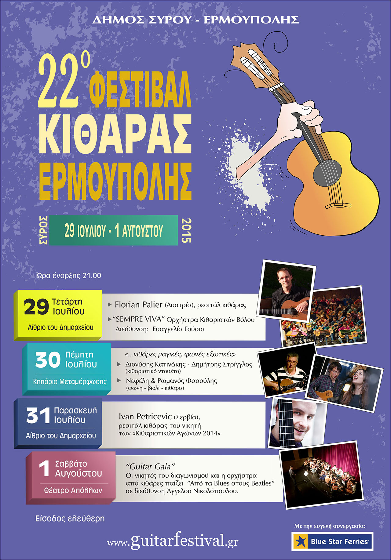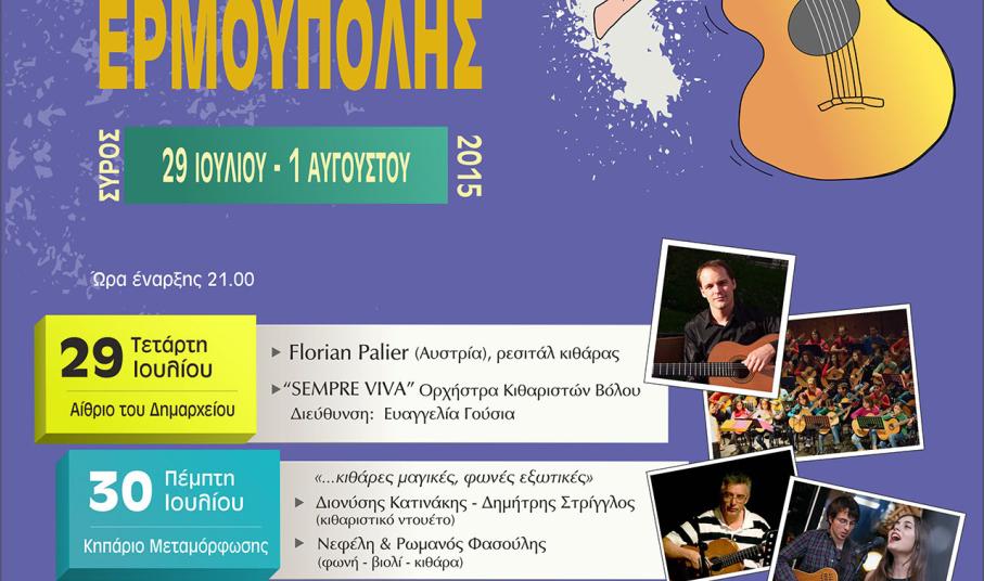 Το Φεστιβάλ Κιθάρας με 22 χρόνια συνεχούς παρουσίας επιστρέφει και φέτος δυναμικά από 28 Ιουλίου έως 1 Αυγούστου πλημμυρίζοντας την Ερμούπολη από ήχους κιθάρας και ονειρικές μουσικές!