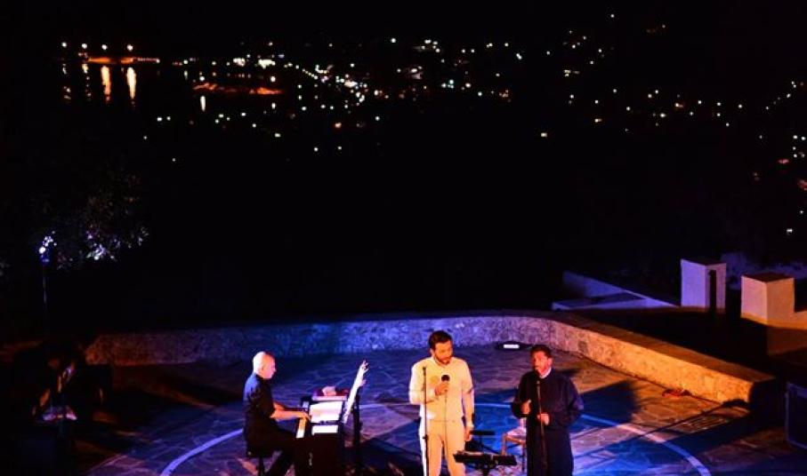Μια υπέροχη βραδιά. Κάτω από τη δεύτερη πανσέληνο του φετινού Ιούλη, η οποία έλαμψε μαγευτική όταν οι γεμάτες πάθος φωνές του Θοδωρή Βουτσικάκη και του πατρός Δανιήλ διέλυσαν τ’ αραχνοΰφαντα πέπλα που την κάλυπταν. Είτε τραγουδώντας παραδοσιακά απ’ όλον τον κόσμο, είτε από τον Ερωτόκριτο, είτε από την ερωτική και παραμυθένια «Αισθηματική Ηλικία», είτε ανέκδοτα σε στίχους Σ. Τριβιζά και Γ. Κλεφτογιώργου.