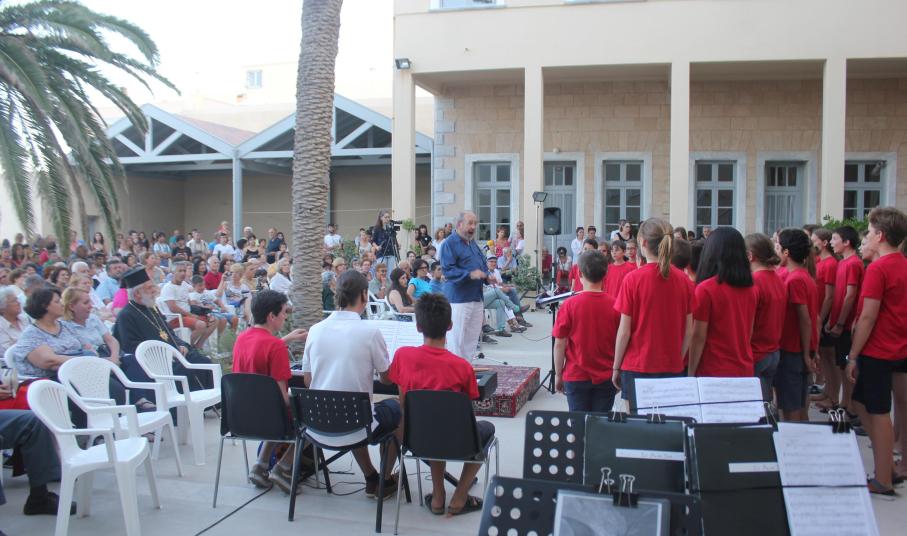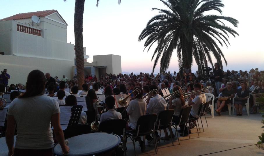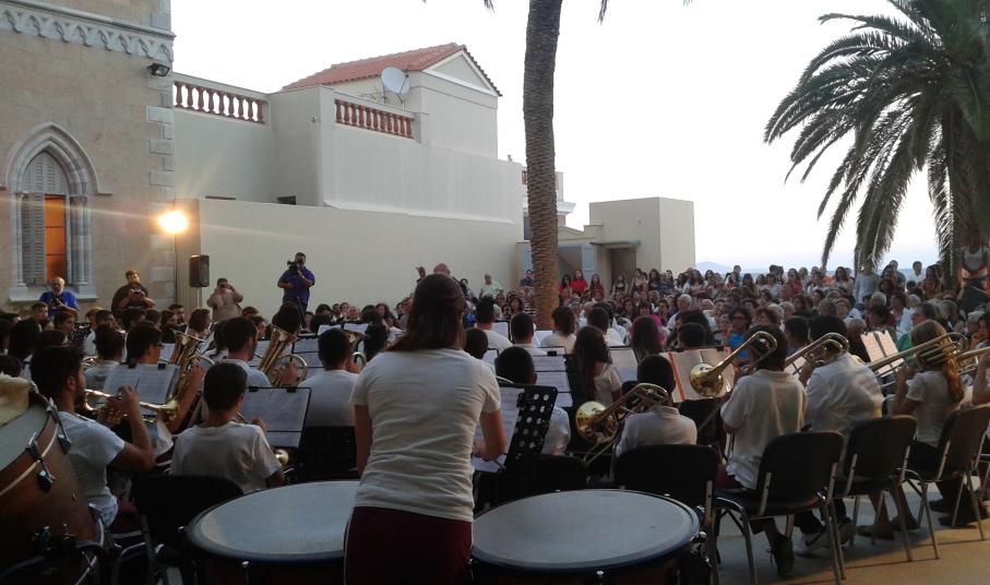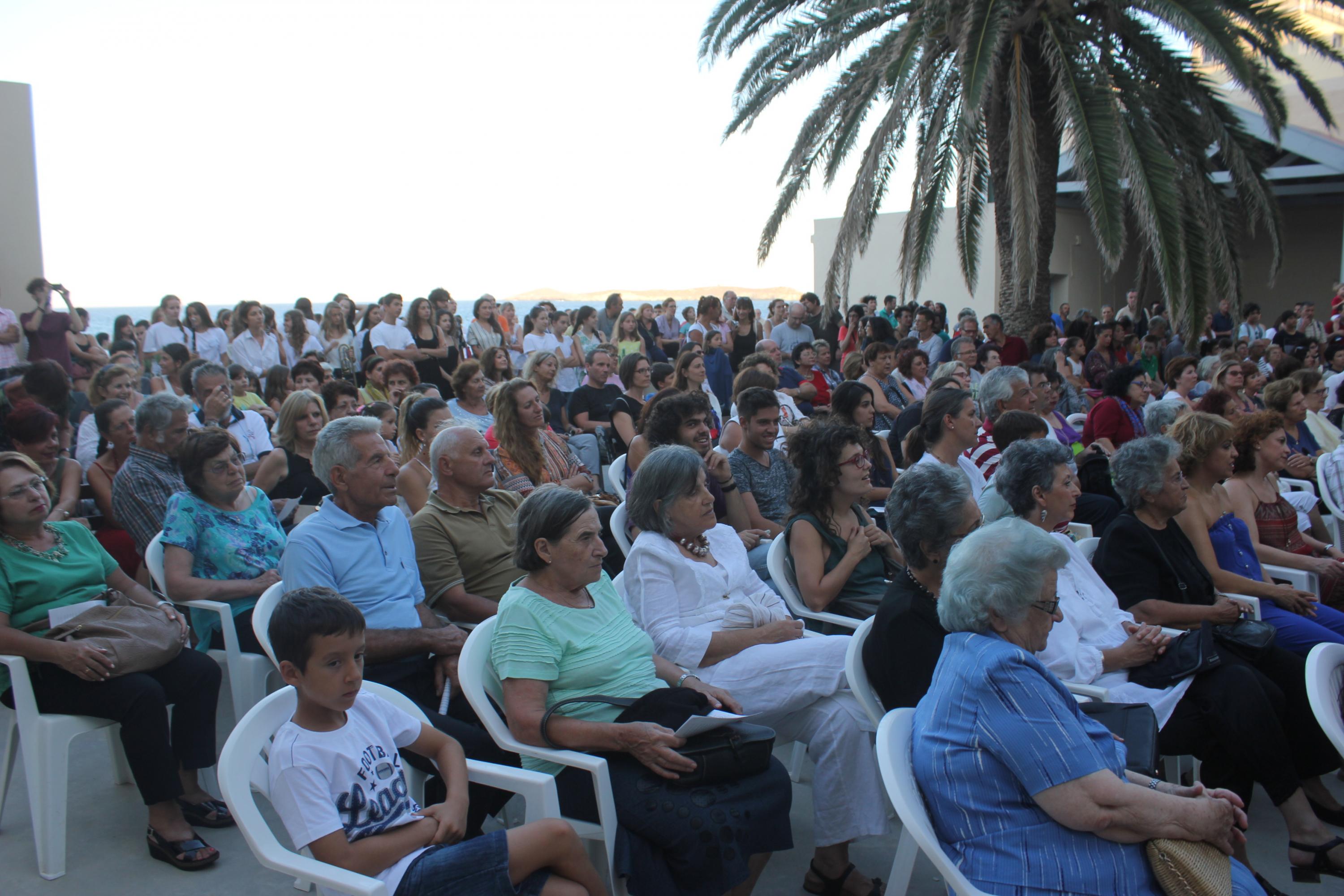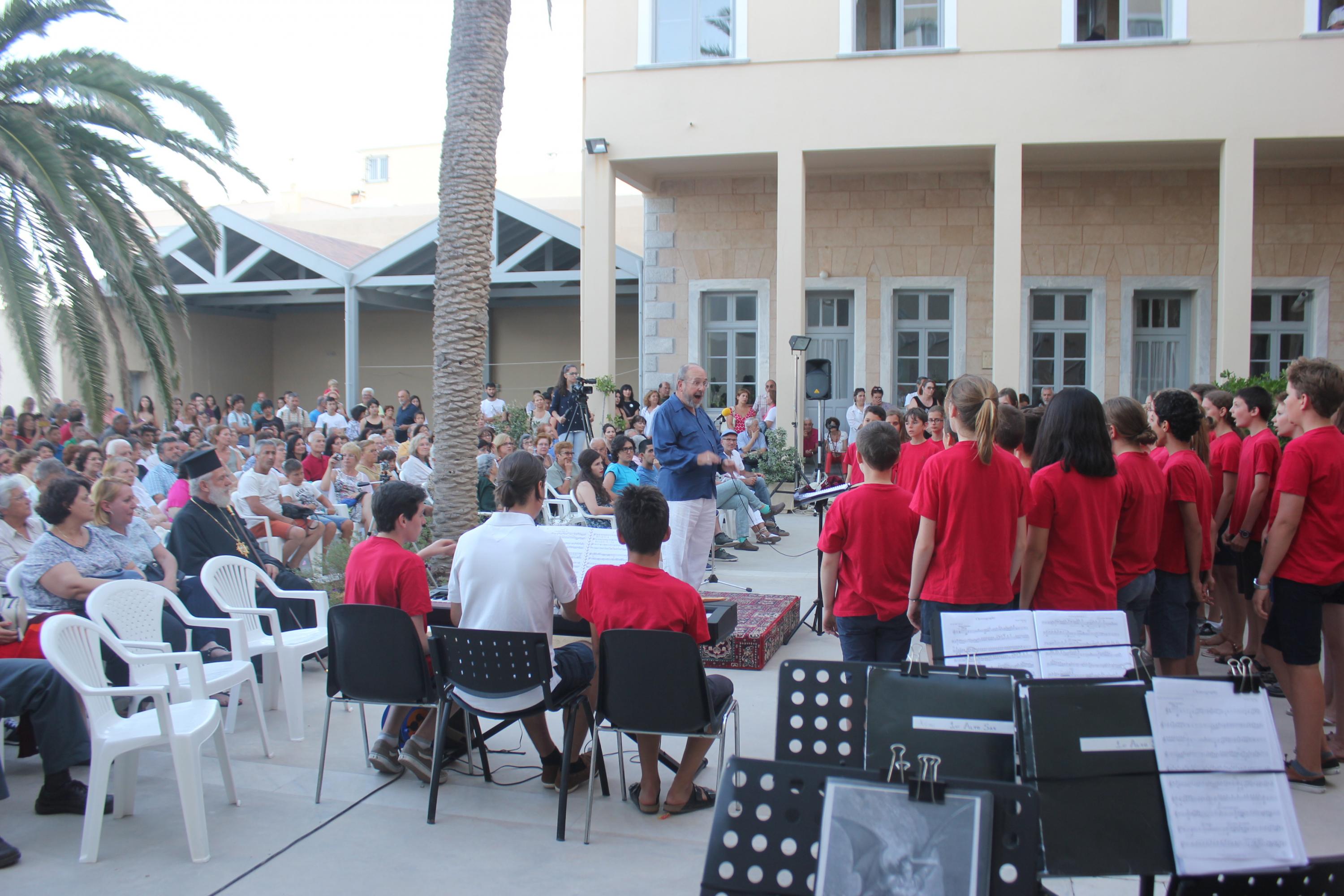 Με φόντο το απέραντο γαλάζιο του Αιγαίου, ο Σύλλογος Φίλων Μουσικής Σύρου ταξίδεψε χθες το κοινό του νησιού σε μοναδικά μουσικά «πελάγη» με συνταξιδιώτες δύο διαφορετικά μουσικά σύνολα, τη Φιλαρμονική του Δήμου Αμπελοκήπων – Μενεμένης και την Παιδική Γαλλική Χορωδία υπό τη διεύθυνση του μαέστρου Francis Bardot.