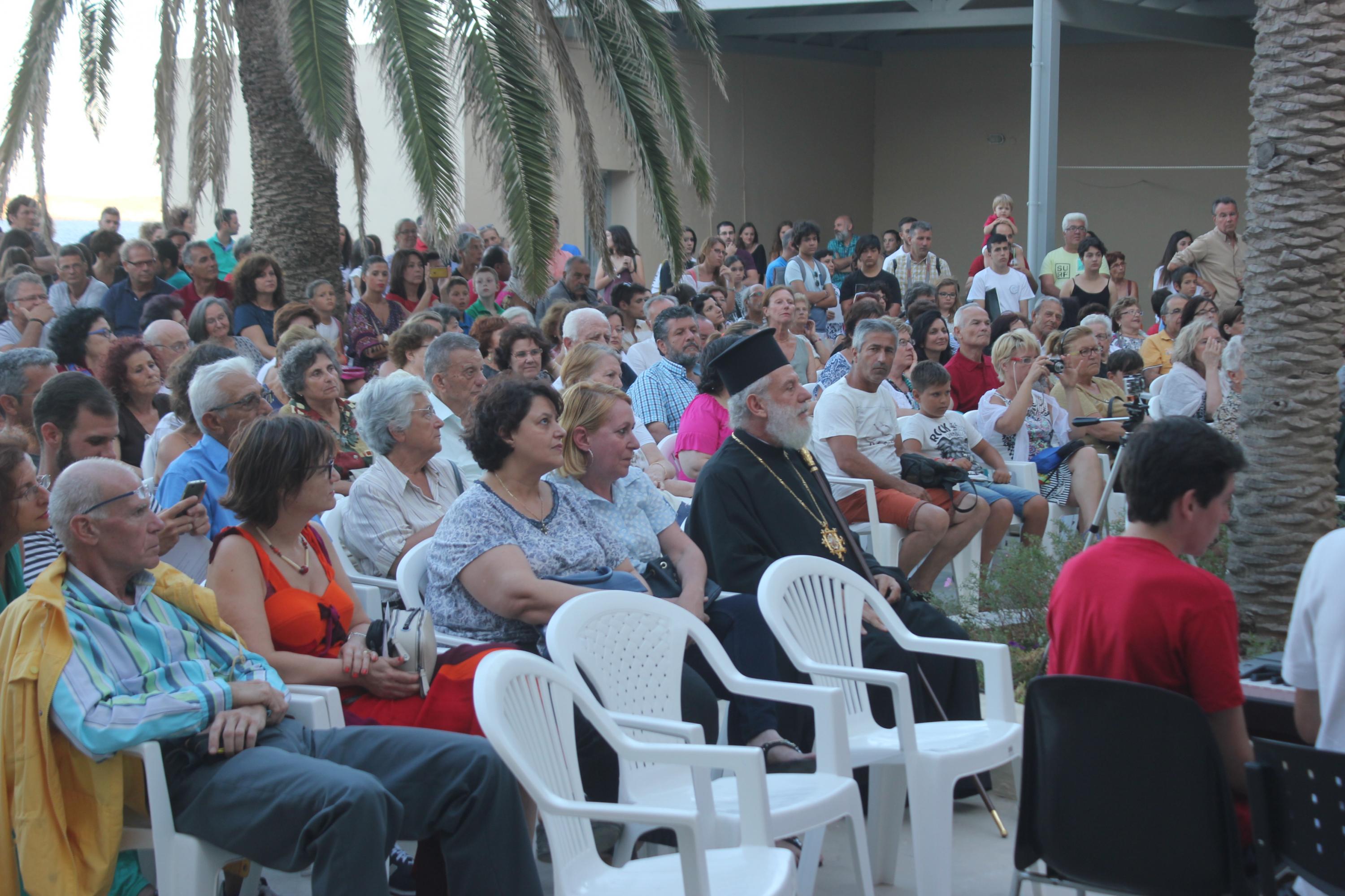 Η συναυλία πραγματοποιήθηκε στο πανέμορφο προαύλιο του Καθολικού Ησυχαστηρίου "Παναγία της Ελπίδας" της Ιεράς Μονής των Αδελφών του Ελέους, παρουσία του Σεβασμιωτάτου Μητροπολίτη Σύρου κ. Δωροθέου Β’ και πλήθους κόσμου.