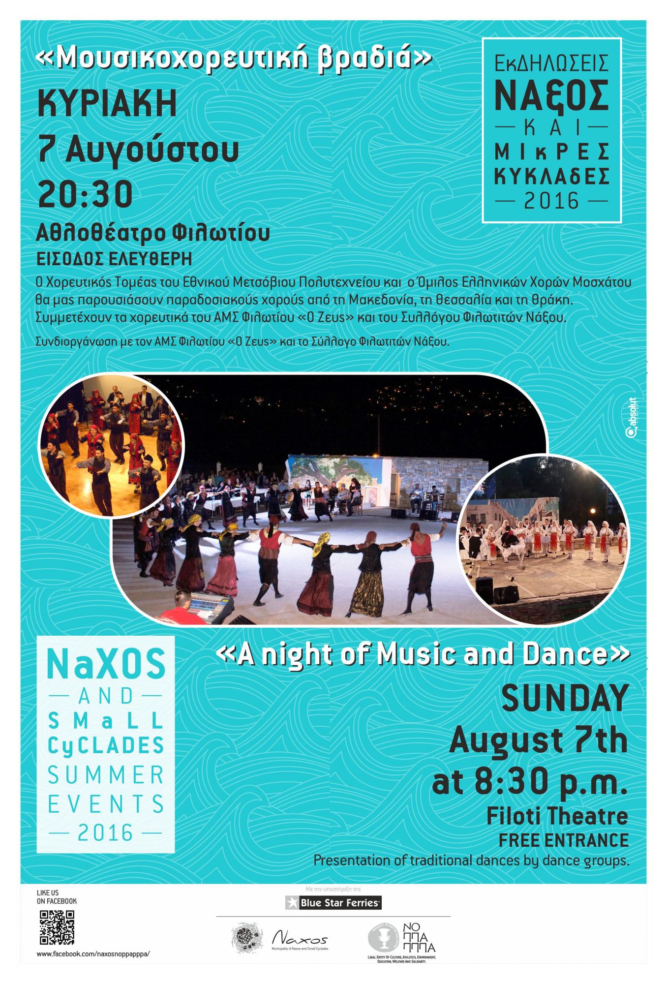 Συμμετέχουν τα χορευτικά τμήματα του ΑΜΣ Φιλωτίου “Ο Ζευς” και του Συλλόγου Φιλωτιτών Νάξου.