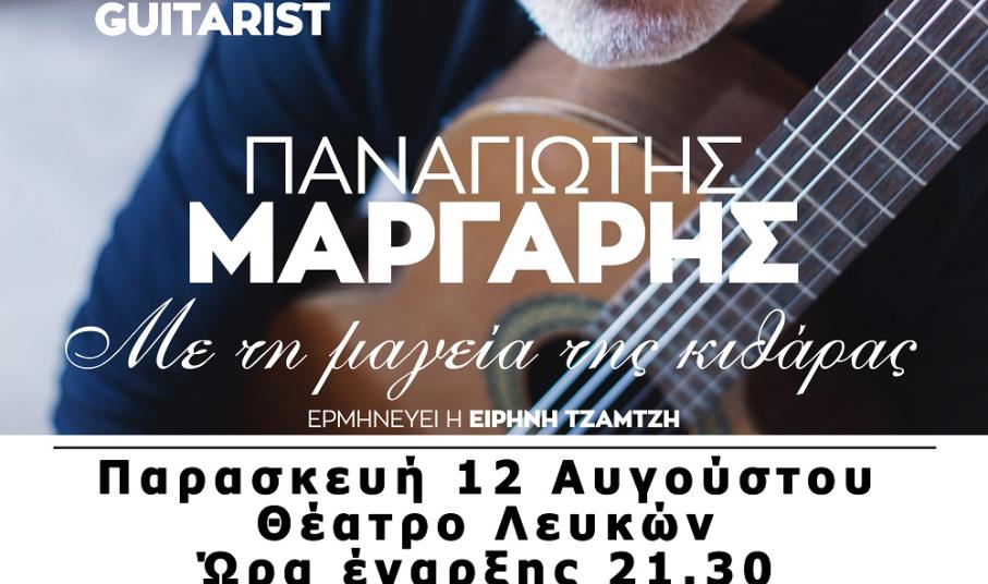 Ο κορυφαίος Έλληνας κιθαρίστας Παναγιώτης Μάργαρης έχοντας στο ενεργητικό του 14 προσωπικούς δίσκους, πολλά μουσικά βραβεία και περισσότερες από 1500 συναυλίες, θα μας ταξιδέψει στους μαγικούς ήχους της κλασικής κιθάρας.
