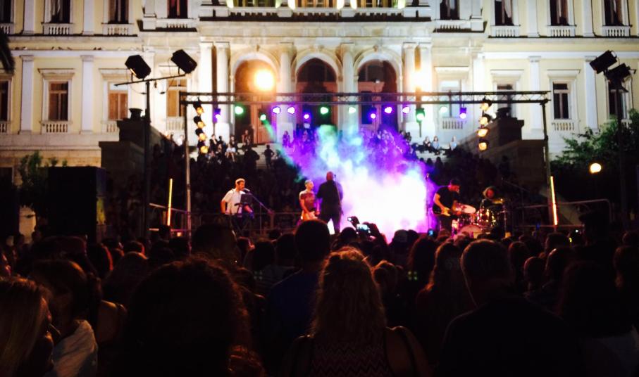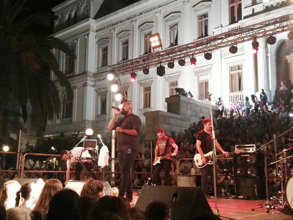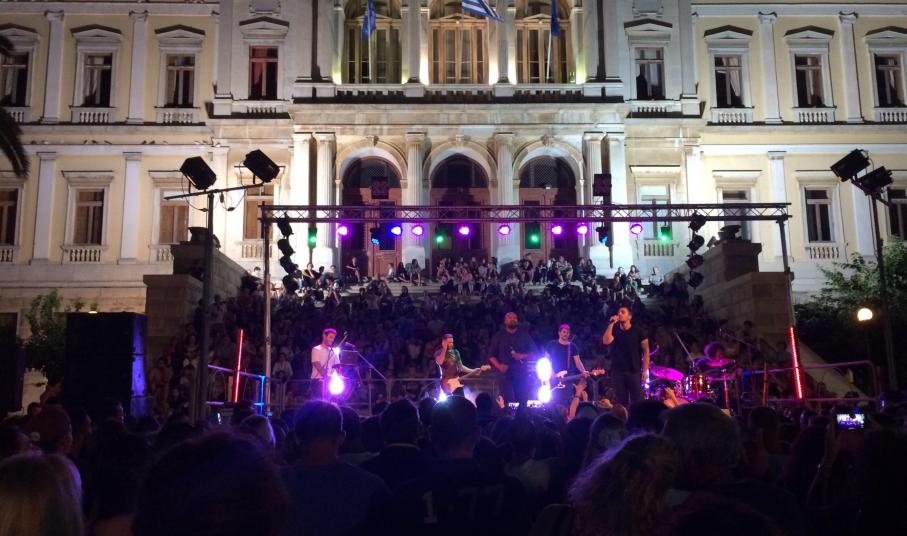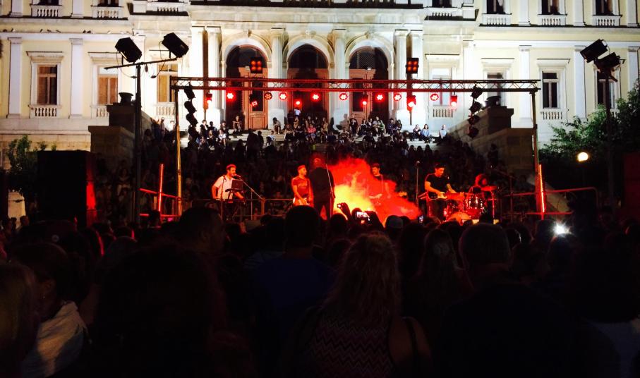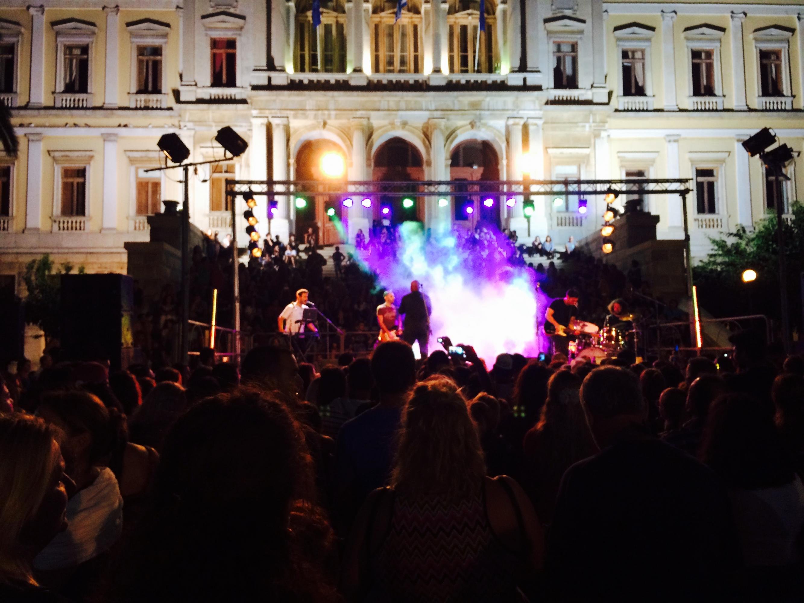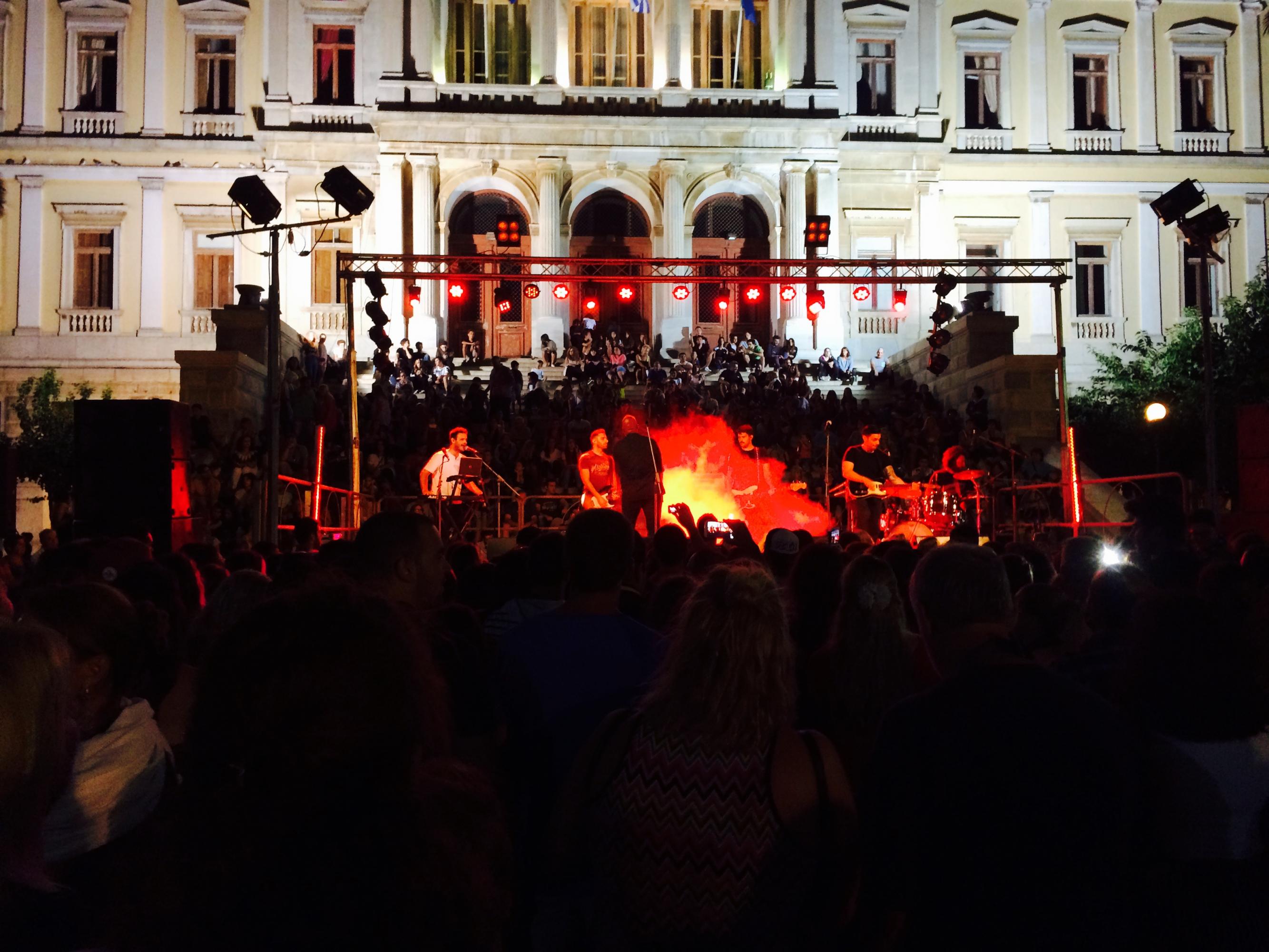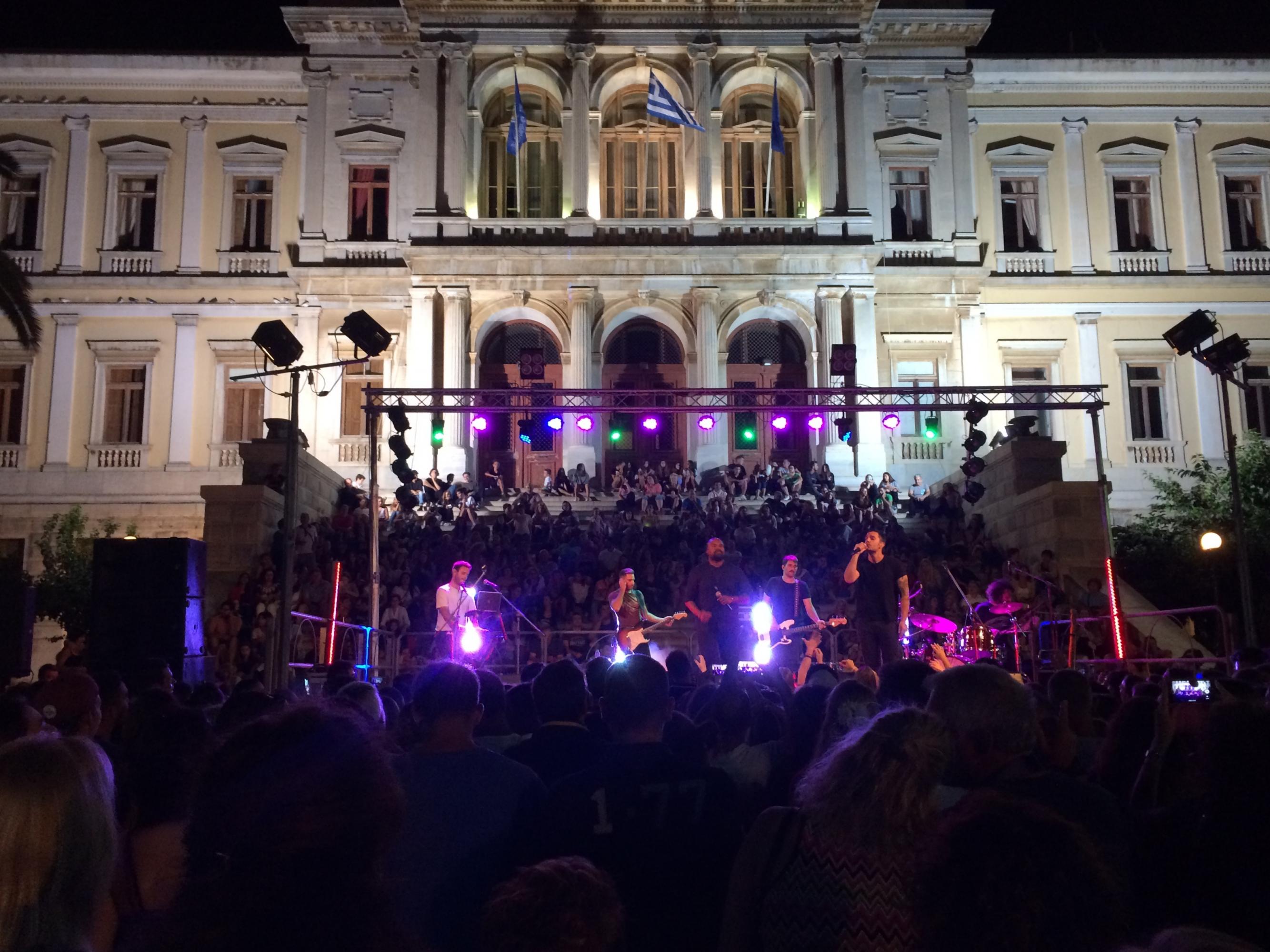 Με σκηνικό το μεγαλοπρεπές Δημαρχιακό Μέγαρο του Έρνστ Τσίλλερ και μπροστά σε μία αναπάντεχα κατάμεστη, από ανθρώπους όλων των ηλικιών, πλατεία Μιαούλη, τα ιστορικά μάρμαρα του 19ου αιώνα σείστηκαν από τη δυναμική, νεανική και ξεσηκωτική συναυλία των, διαφορετικών, αλλά και τόσο ταιριαστών πάνω στη σκηνή, καλλιτεχνών.