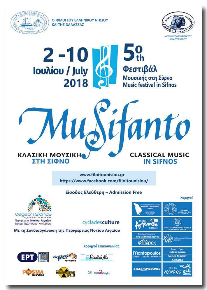 5ο Φεστιβάλ Μουσικής Σίφνου MuSifanto – Πρόγραμμα (Σίφνος 2-10/7/2018).